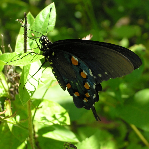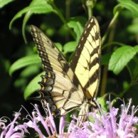 A side view of the black (female dark morph of the tiger) swallowtail that begins the series. Thank goodness I moved the exposure compensation back to zero, with those dark wings! 1/123s, f/4.5