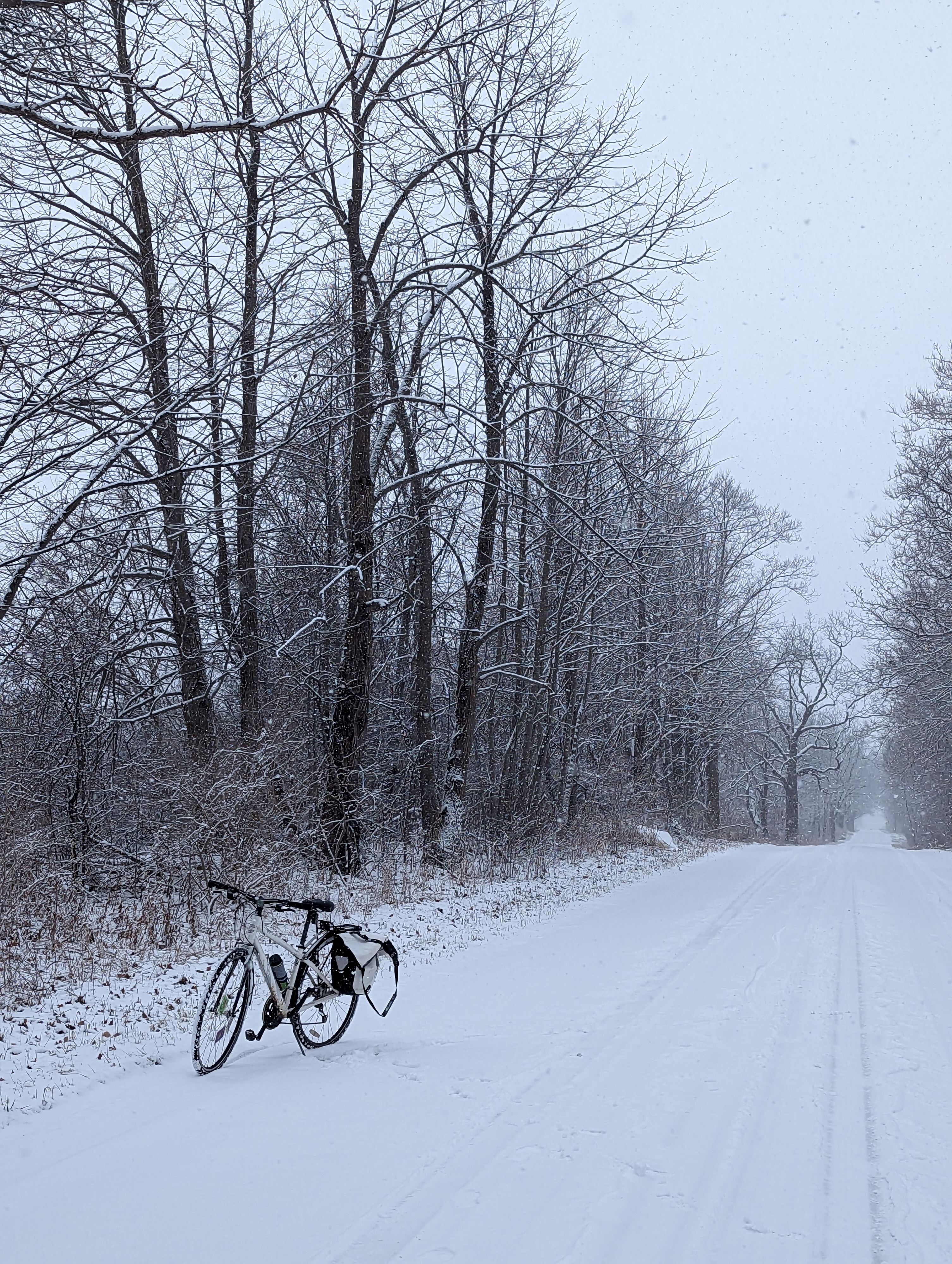 But this beautiful snowfall! (In fact, that's pretty much all I noted about it in my journal for the day[2] .) And since I happen to have a black and white bike, it co-ordinated beautifully.[3]