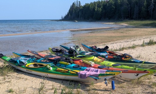 qajaqs on a beach