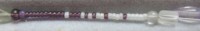 Ooooh, maybe she hasn't totally lost her touch after all. Unfortunately I was once again not paying attention, this time to the photography, so you'll just have to imagine all those chips shoved together. Again I started with a 9/0? seed bead, a 6/0 (4mm) purple, then a small moonstone rectangle, then a series of chips, sorted, you'll notice from smallest to biggest, and from flattish to chunky as well. If you're willing to take the time to sort chips, you can really get some lovely textures by spacing them with seed beads. See the 2–>1 pages for good examples. Continuing, we have a fairly dramatic jump in the shape of a moonstone oval, a pair of matching triangles (courtesy of the sorting—see top image), then a disk and 10mm clear colorless (clc) frost before echoing the moonstone oval, another ‘lengthening’ interruption in the 8mm moonstone, before the moonstone diamond (again echoing and reversing the rectangle below) before ending with the 6/0 and 9/0 purples—exactly the mirror image of the way we started. Classic.