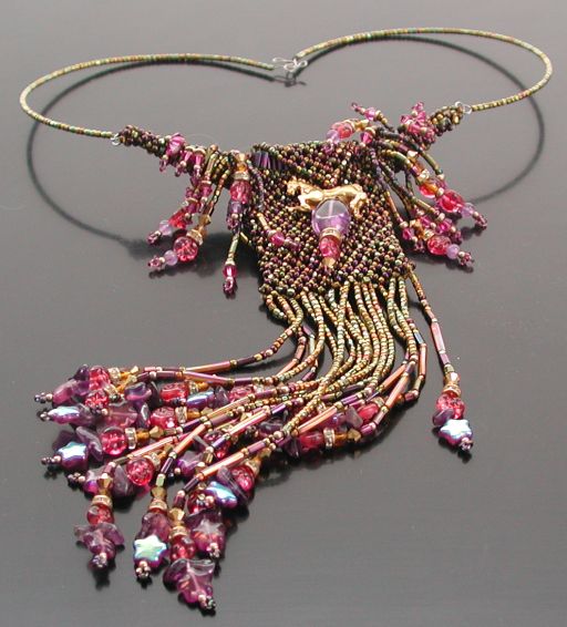 Talk about kludgy! My total inexperience with bead weaving, once I strayed off the directions, really shows. Nevertheless, I have a sentimental fondness for this piece, owing to its history—not to mention the memories of my frustration, trying to get it to work.
