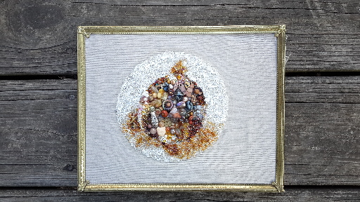 There's a strong strain of ‘let's use this up...’ —I have a lot of white and colorless seed beads because I detest dyed seed beads,[2] and an easy way to remove dye from beads is to anneal them. Provided you have a kiln with tight temperature controls, which I do, and ideally a hood to deal with fumes, which I do;) You see where this is going, right? Yeah, lots of white and clear beads.