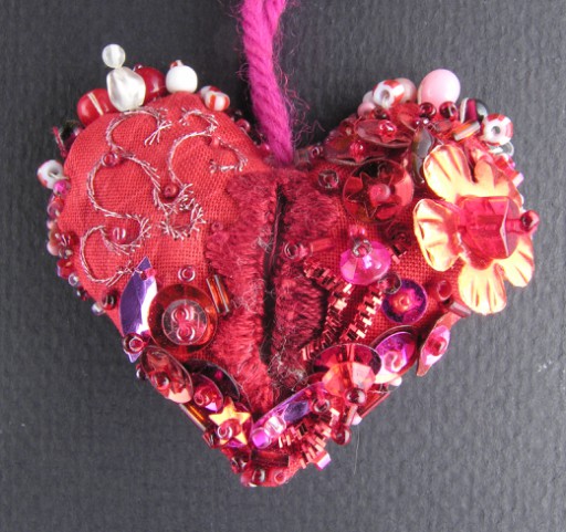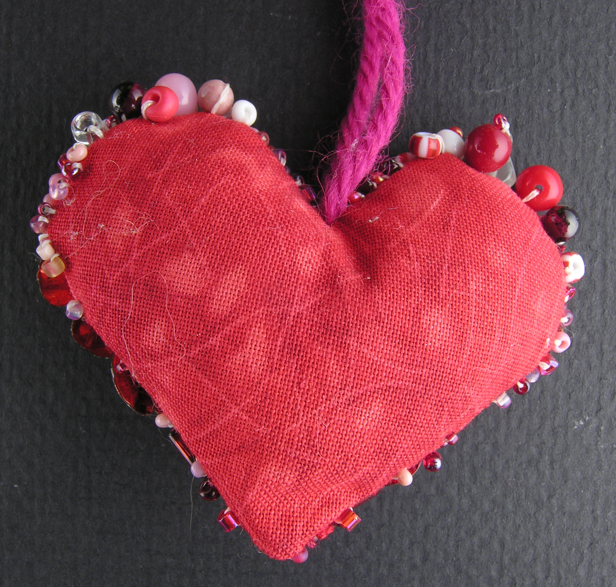 I found this hideous little heart that I photographed in 2006 while cleaning up some old pysanky pages, so I probably made it a decade or more ago. I have no idea where it is now (nor do I care). I do, however, have an open slot for the week, part of a month long series to catch-up all the old kumi and beaded embroidery that's been gathering dust for the past 5 or 10 years, because while individual pieces may not be especially interesting, they do sometimes show evolution[1] in my approach.