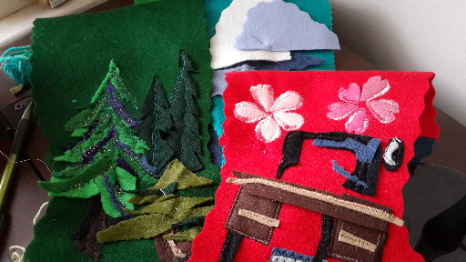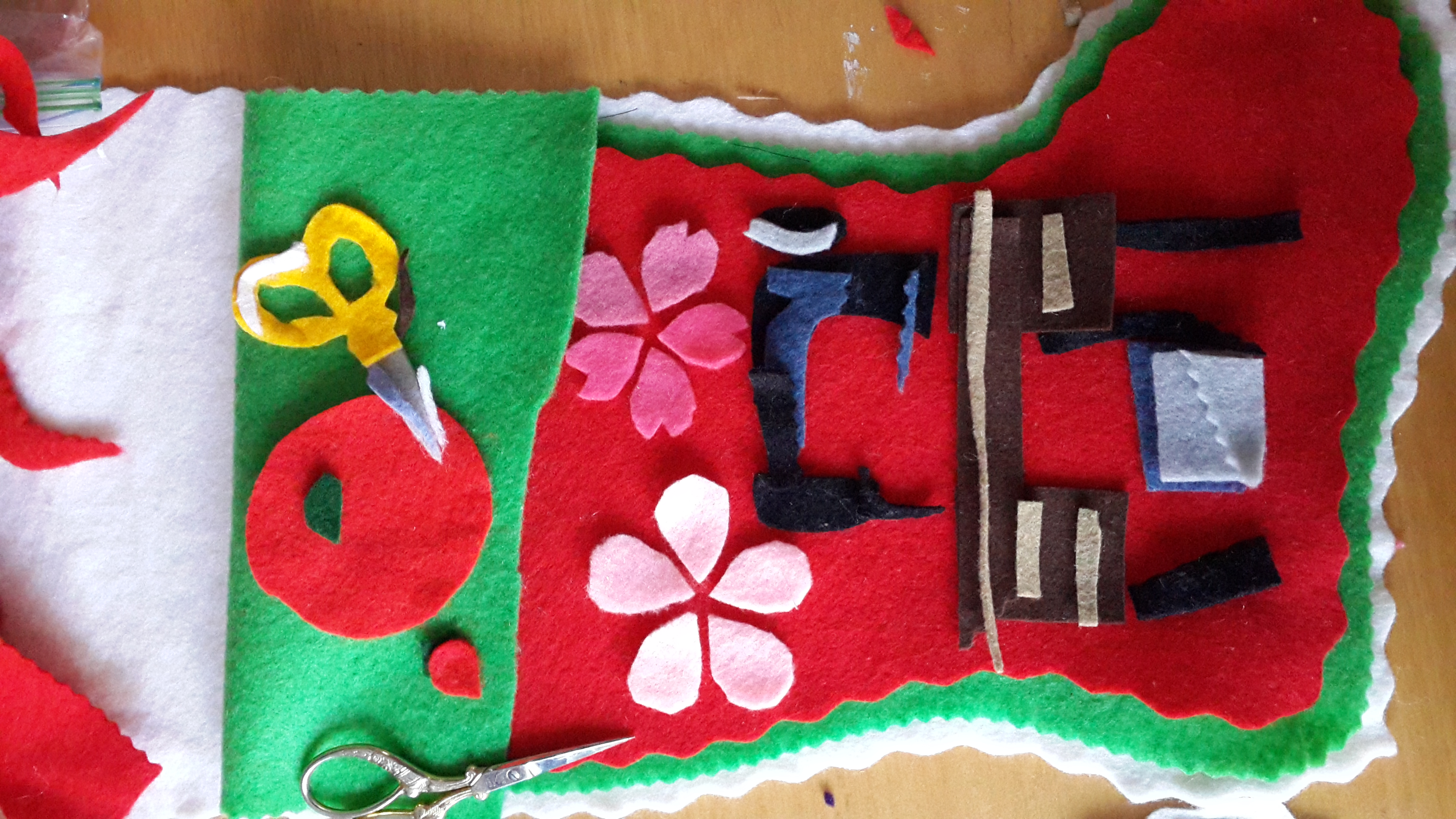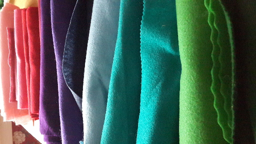 felt, color sorted. Because it doesn't ravel, comes in many colors, is easy to embroidery, is inexpensive—and also traditional—I use this fabric to make xmas stockings.