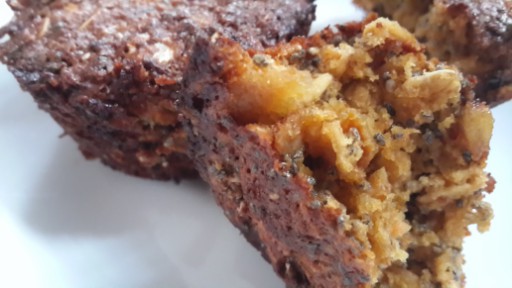 mix dry ingredients, grinding out any lumps; beat together wet, then add to dry until just moistened. Divide batter equally into well-sprayed (pam) muffin tin, bake at three hundred something-something—375? for 19 minutes (all that sugar browns & crisps outside very readily).