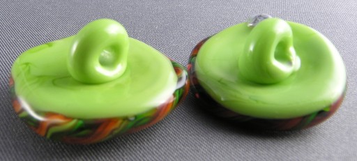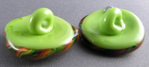 Moral: I'm going back to clear colorless for shanks, it melts easier and smoother, and to heck with matching the shank and base color. In the meantime, I guess I could put these on my beloved fuzzy green coat, as they're certainly the right color, and probably the correct size, and I suppose I could practically discover just how weak those joints are...