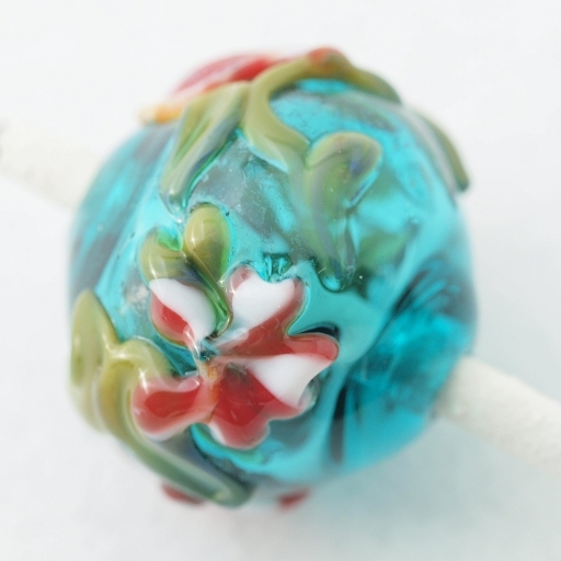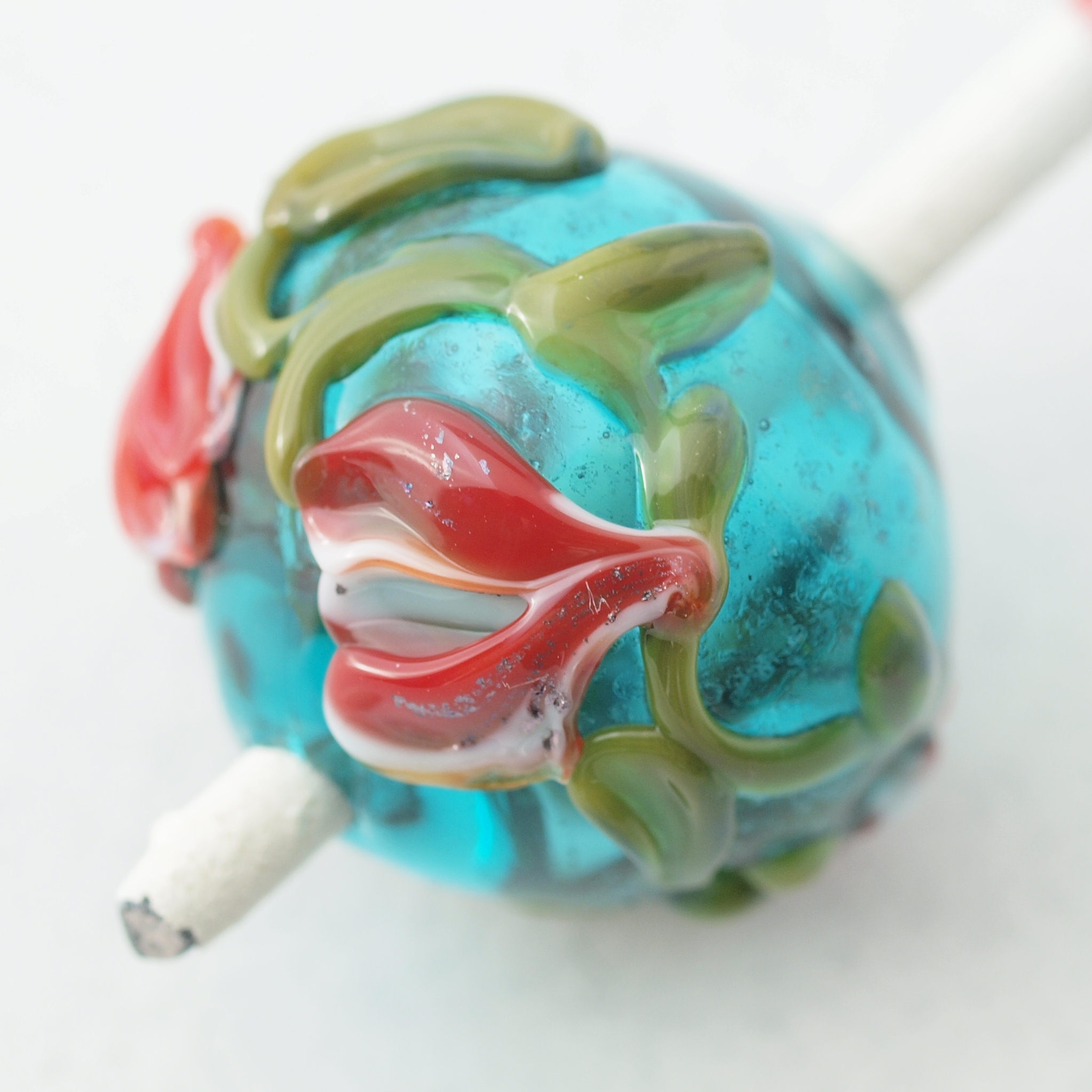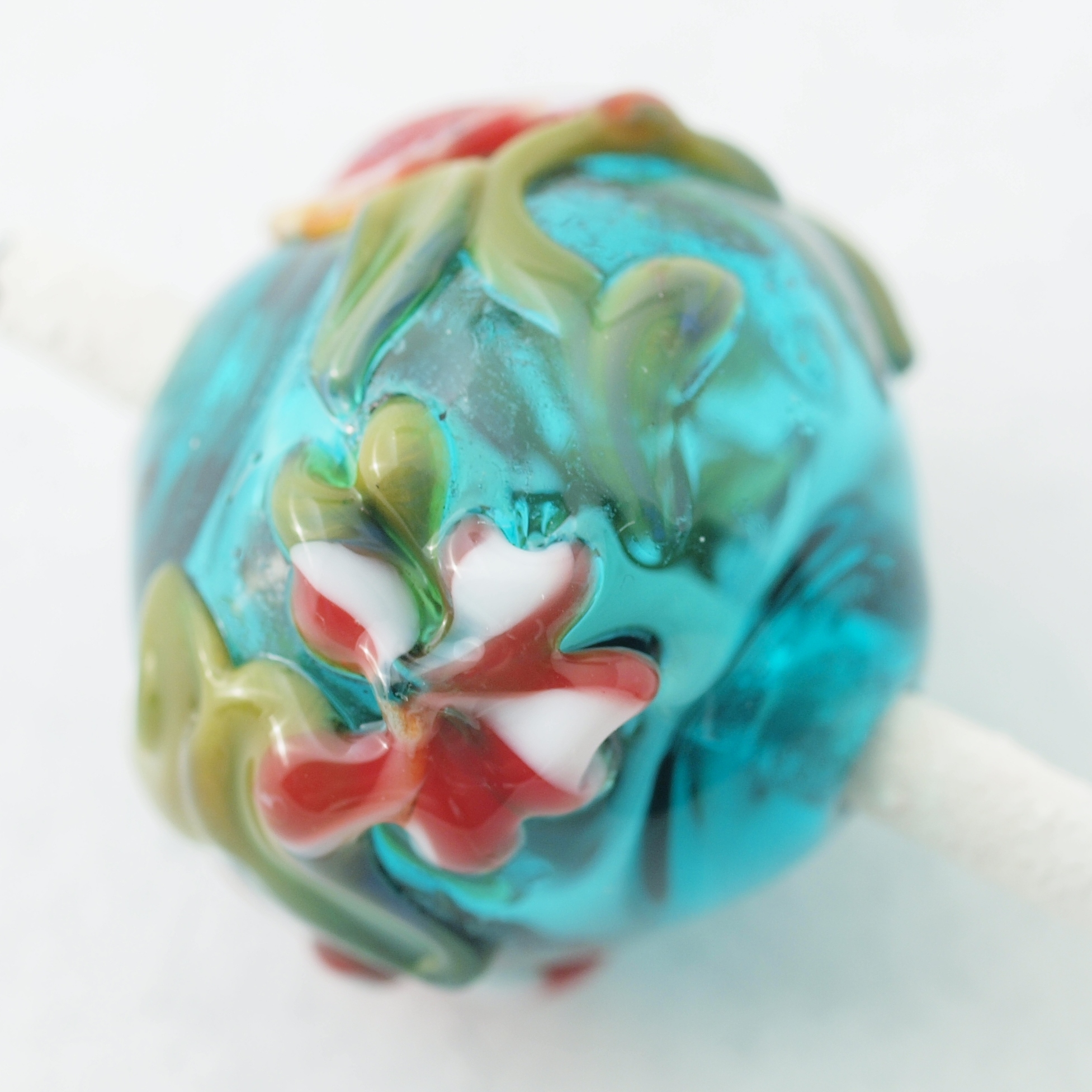 21x23mm, hollow effetre. Made 1mar12. You can see just the tiniest touch of metallic flakes in the red.
