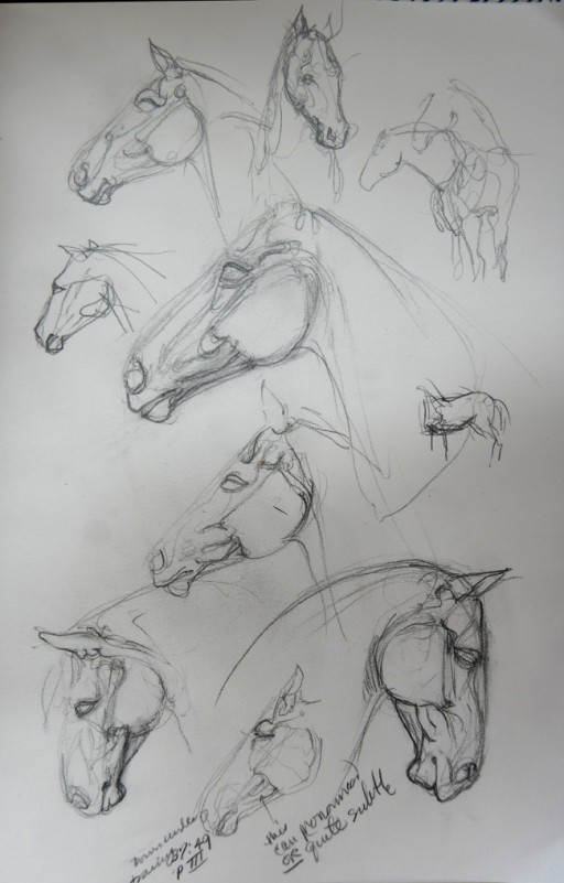 Assorted horsehead sketches from photographs, showing facial musculature. 12?apr20; photographed 14apr20, Lumix LX100, cropping & exposure adjustments.