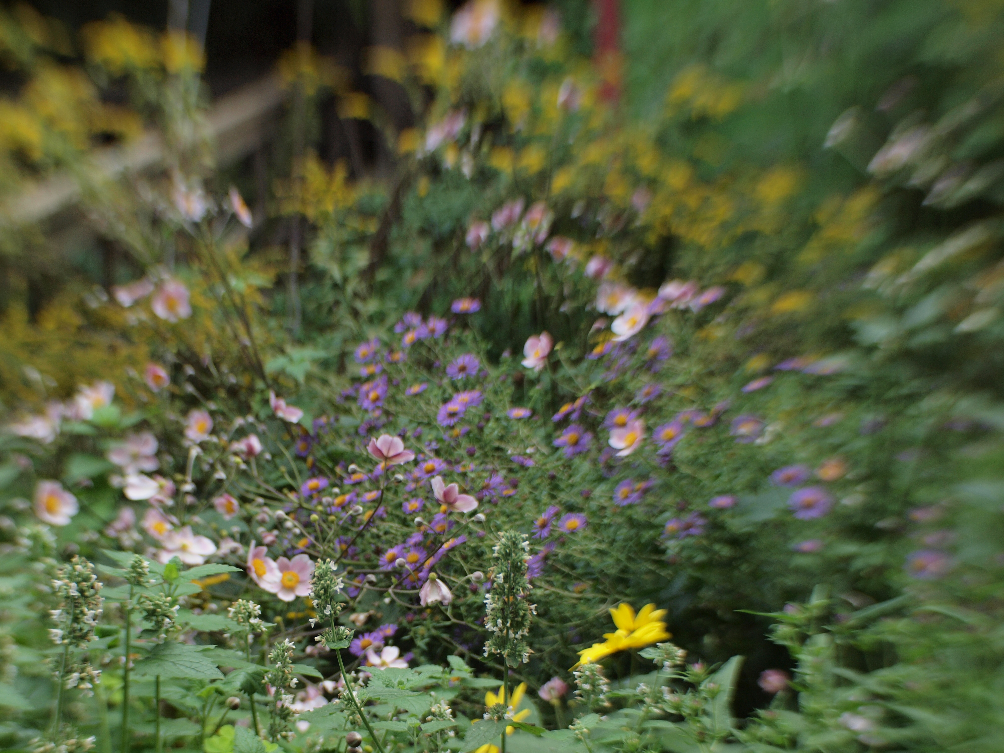In fact, the Japanese anemone in the last shot now really gets too much sun, since the neighbor removed some large shrubs, necessitated by the new fence (which is very handsome, and means I can get rid of the dorky concrete blocks and utterly stupid ‘farm fence’ on my side.) This lot, however, gets almost exactly the right amount of sun, seldom needs watering. They're just overgrowing the astilbes and woodland geranium, that's all.