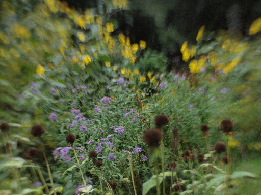 Lots and lots of goldenrod and perennial sunflowers. Both are very, very weedy, so I've pretty much ripped them all out, secure in the knowledge that plenty of them will return:)