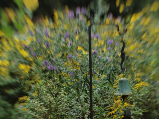 Last year we had a drought, which was lovely for sitting on the deck and doing beadwork, because there were hardly any mosquitoes. This year we had so much rain I didn't have to water until I started transplanting, this fall. The garden got very weedy 2010–2011, and this year I accepted that I would have to get very aggressive to get things under control—so pretty much all the really weedy spready stuff is out.