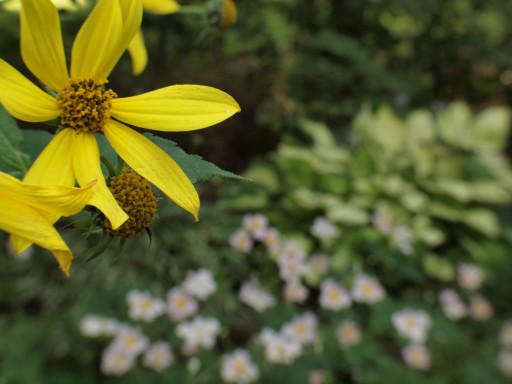 The perennial sunflowers, are, of course, always everywhere, as they're incredibly weedy. After the flowers stop blooming, I pull all of it I can find, but there's always plenty of the (supposedly) edible tubers for the following year. This is not a plant to have if you hate weeding.