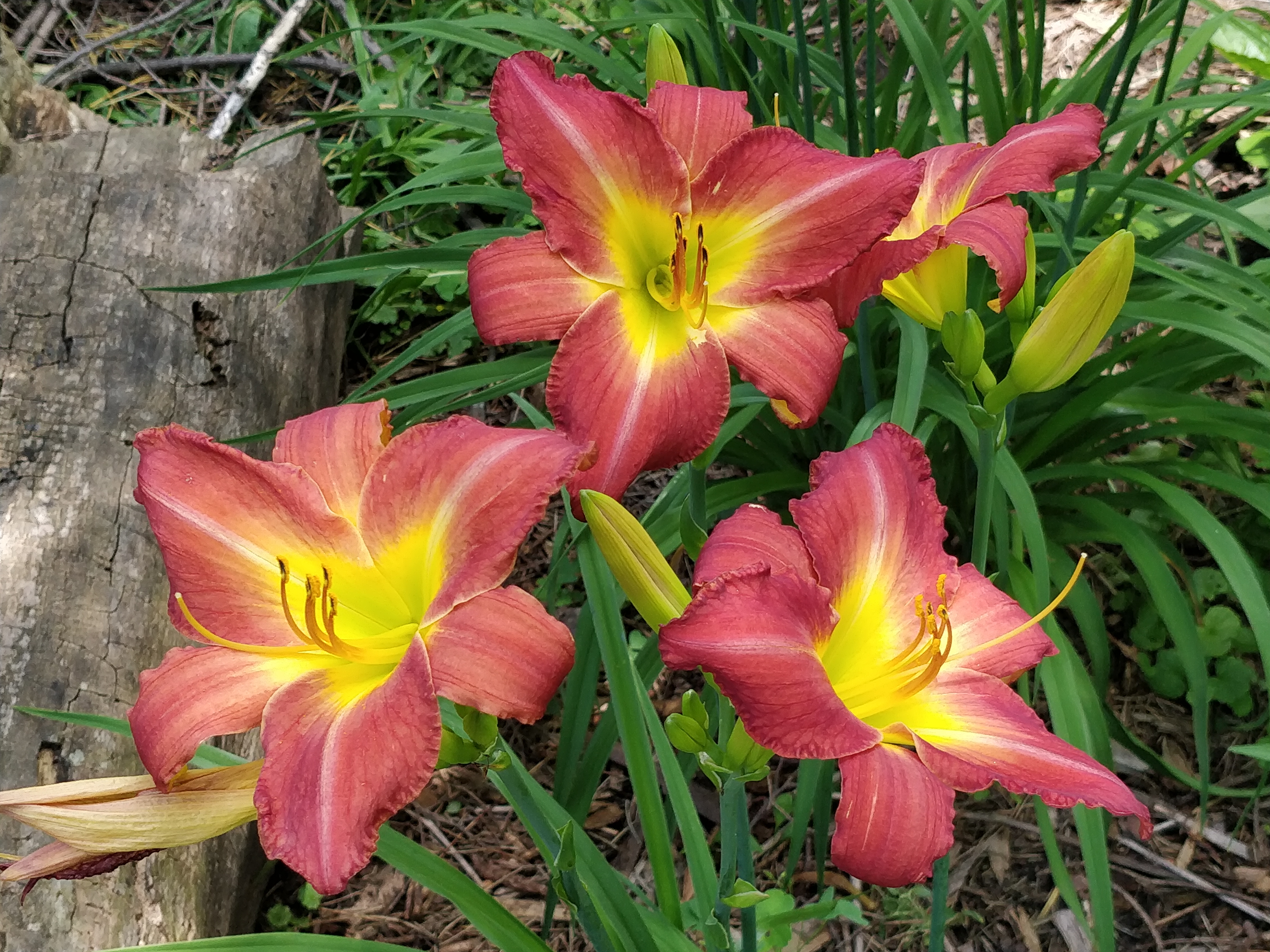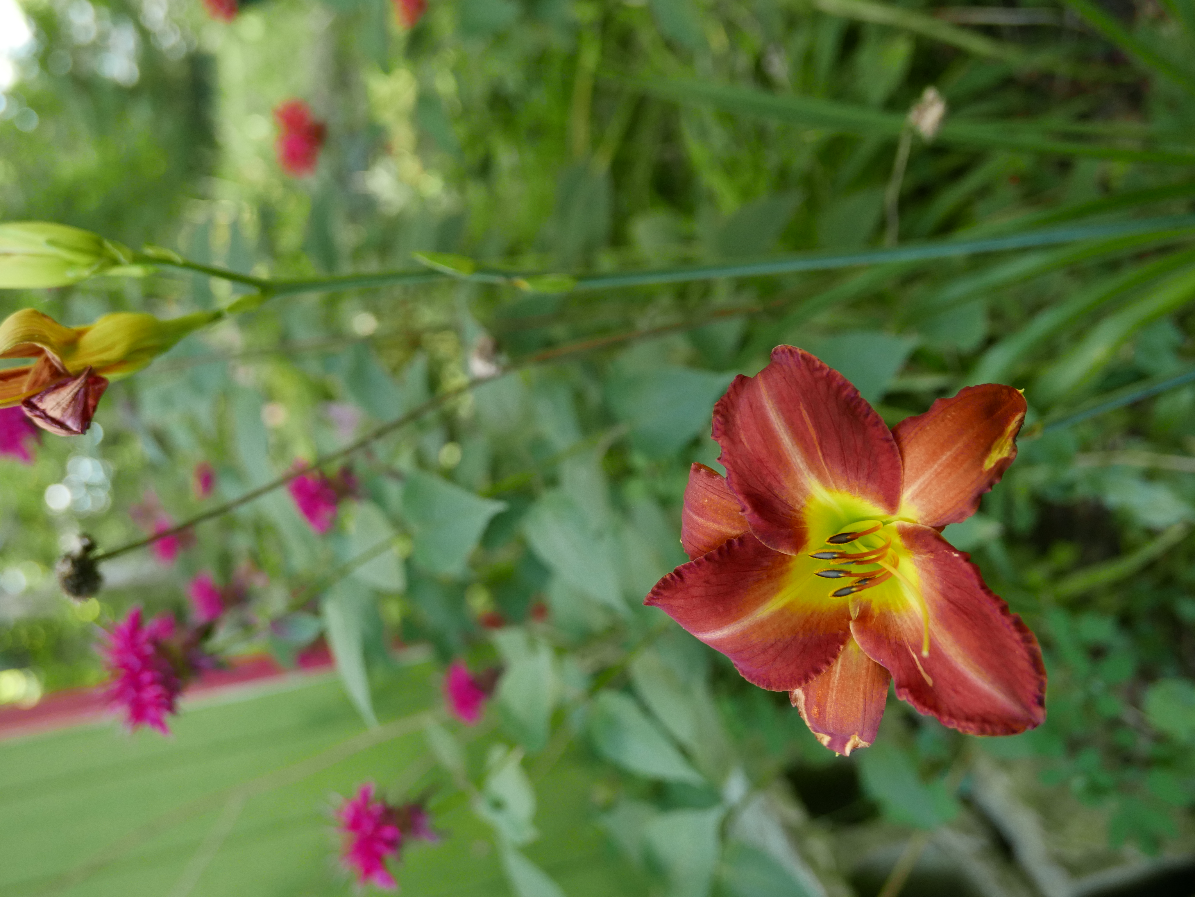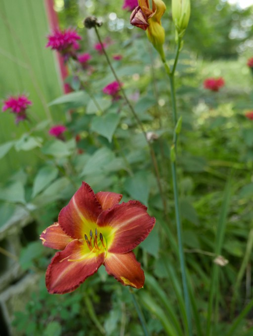 Flash forward nearly 20 years: daylilies planted with red and scarlet monarda.