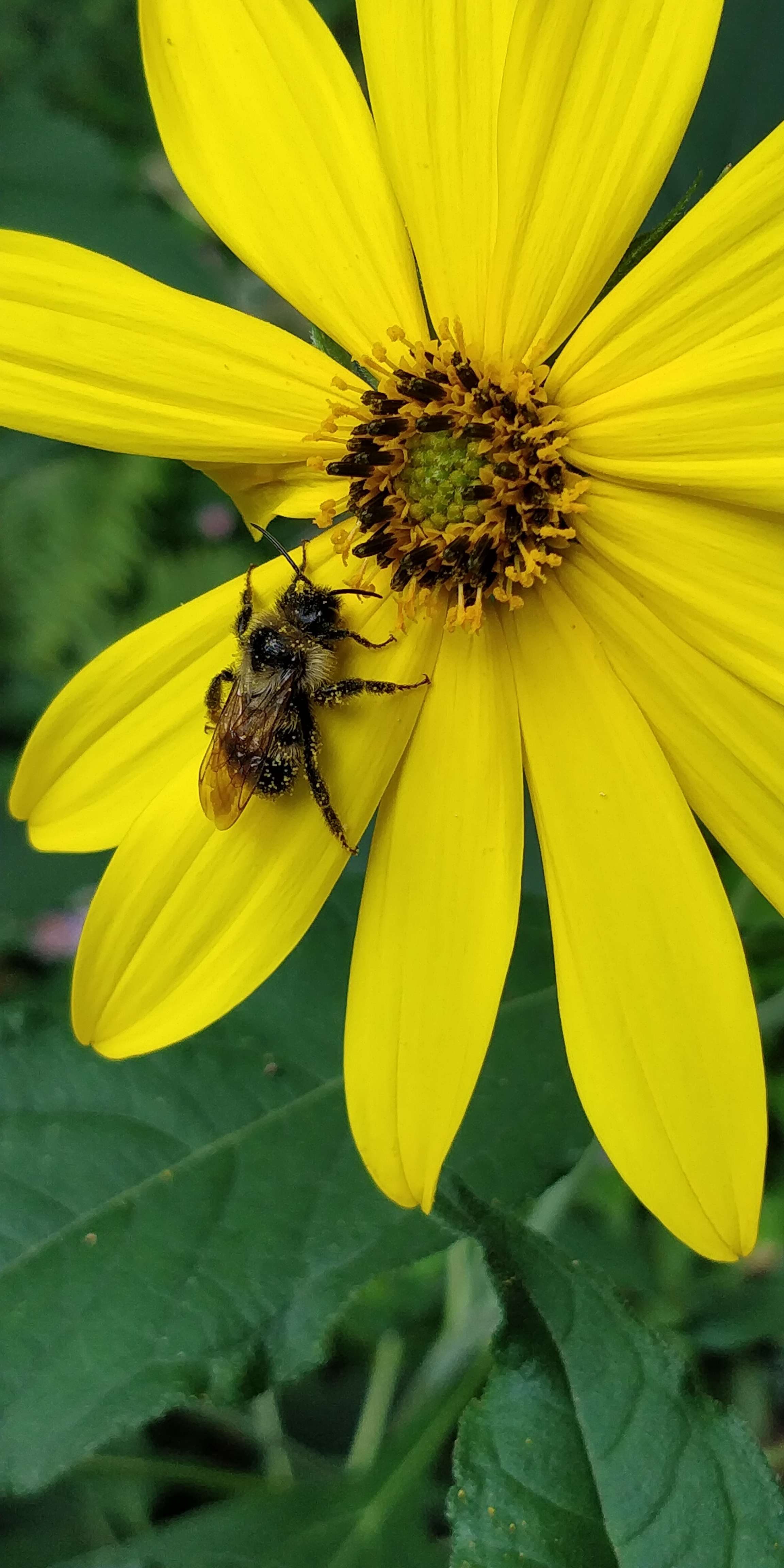 Bumblebee sleeping on perennial sunflower.[1] Despite its being a bit out of gamut, you can't fault the sharpness, allowing, ofc, for the lens and sensor limitations. 1 sep2020, 1/264s, ISO 125, f1.7–out of the box: OnePlus/2020T/20200903T