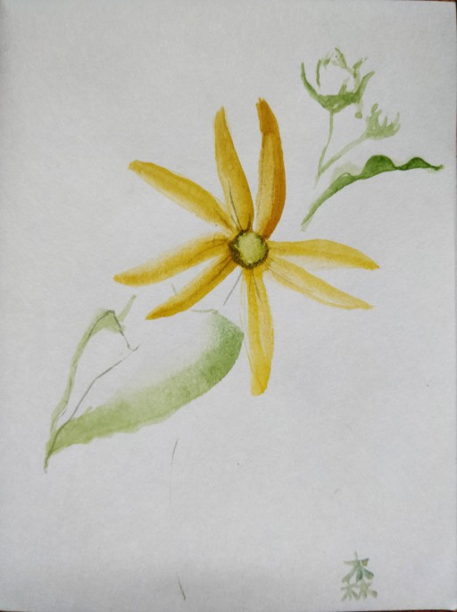 watercolour on 9x12" paper folded in quarters to make a note. ISO 640, f1.7 1/50sec /OnePlus/2020T/20200908T; gimp tools uniform transform, crop & levels applied.