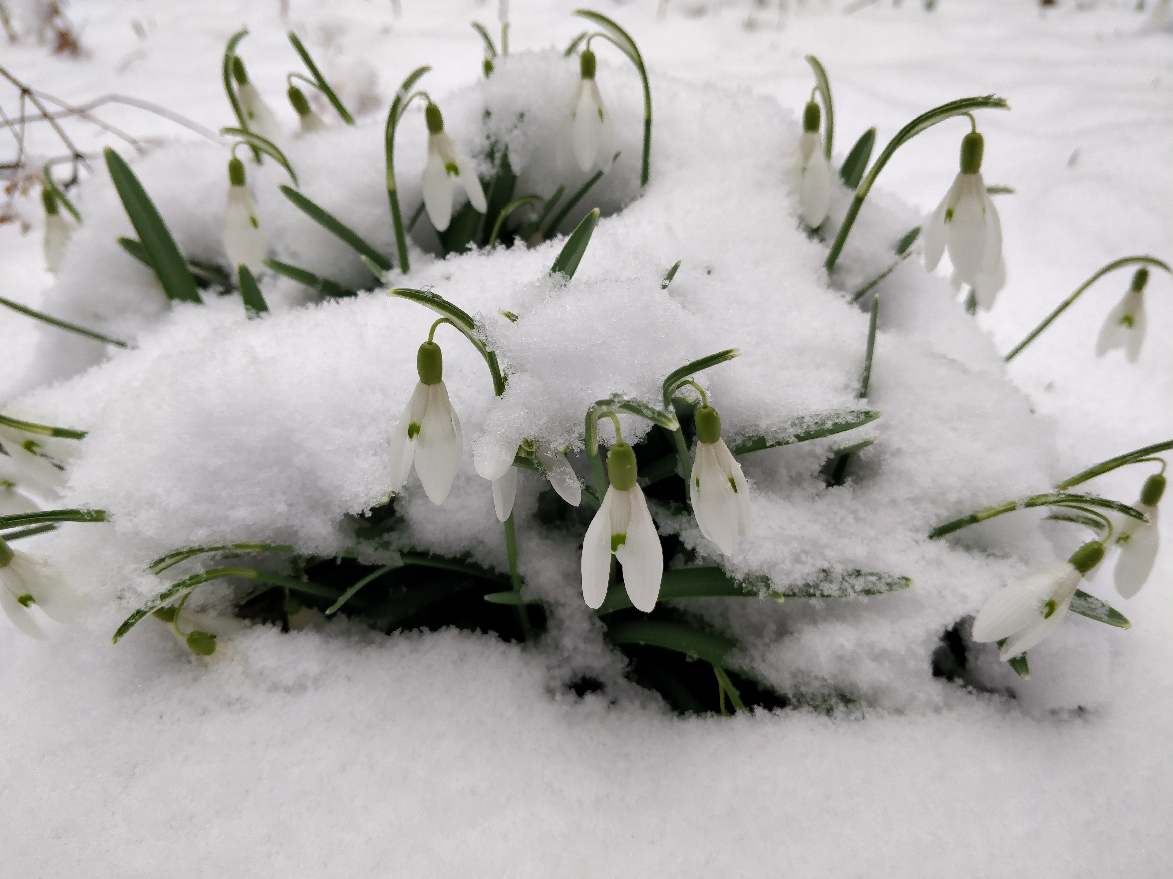 The pictures take with the cell phone are of a clump in the front yard, and the ones by the olympus from the back. I have my next door neighbors to thank for this plethora of snowdrops: I had bought bulbs, but of the hundred or so I ordered, on a couple thrived. Now I have lots:)[1]