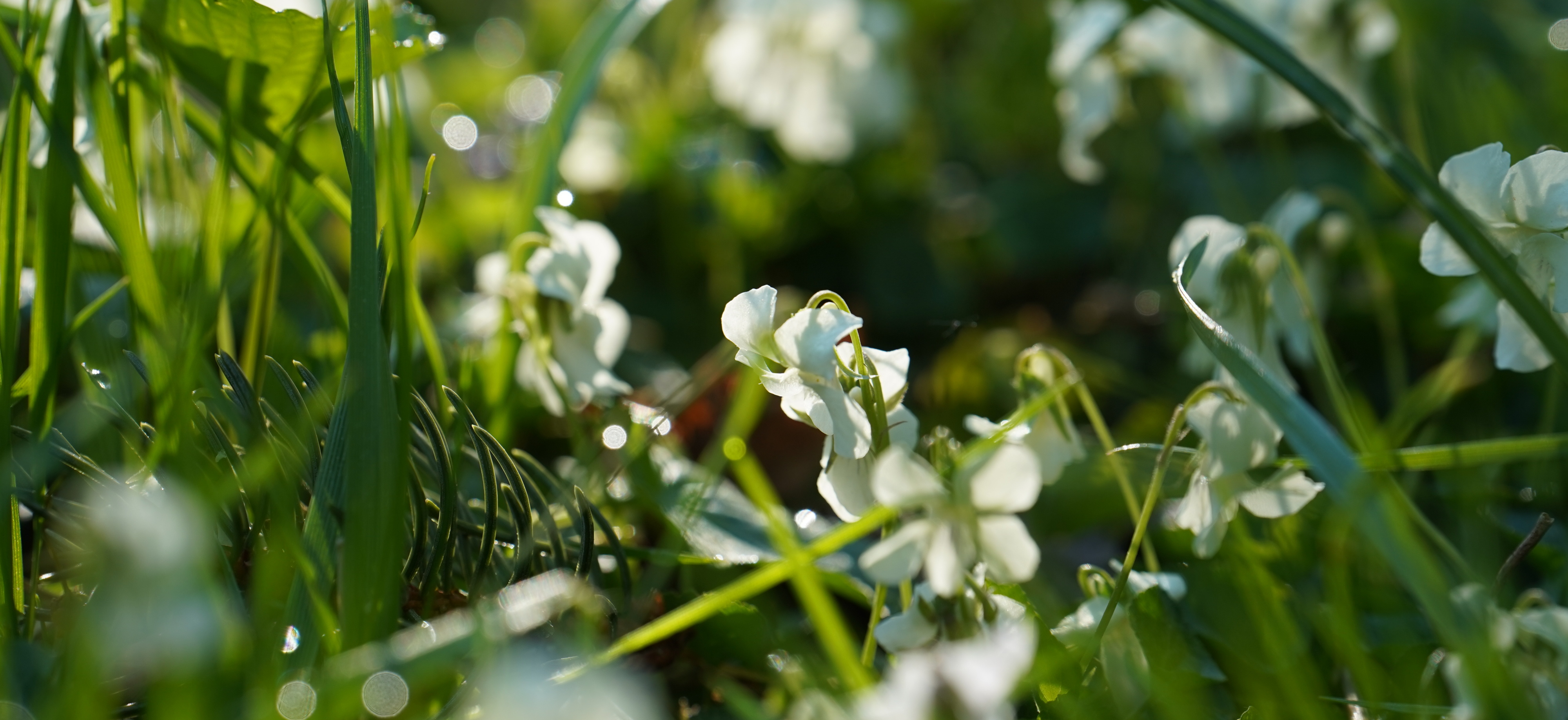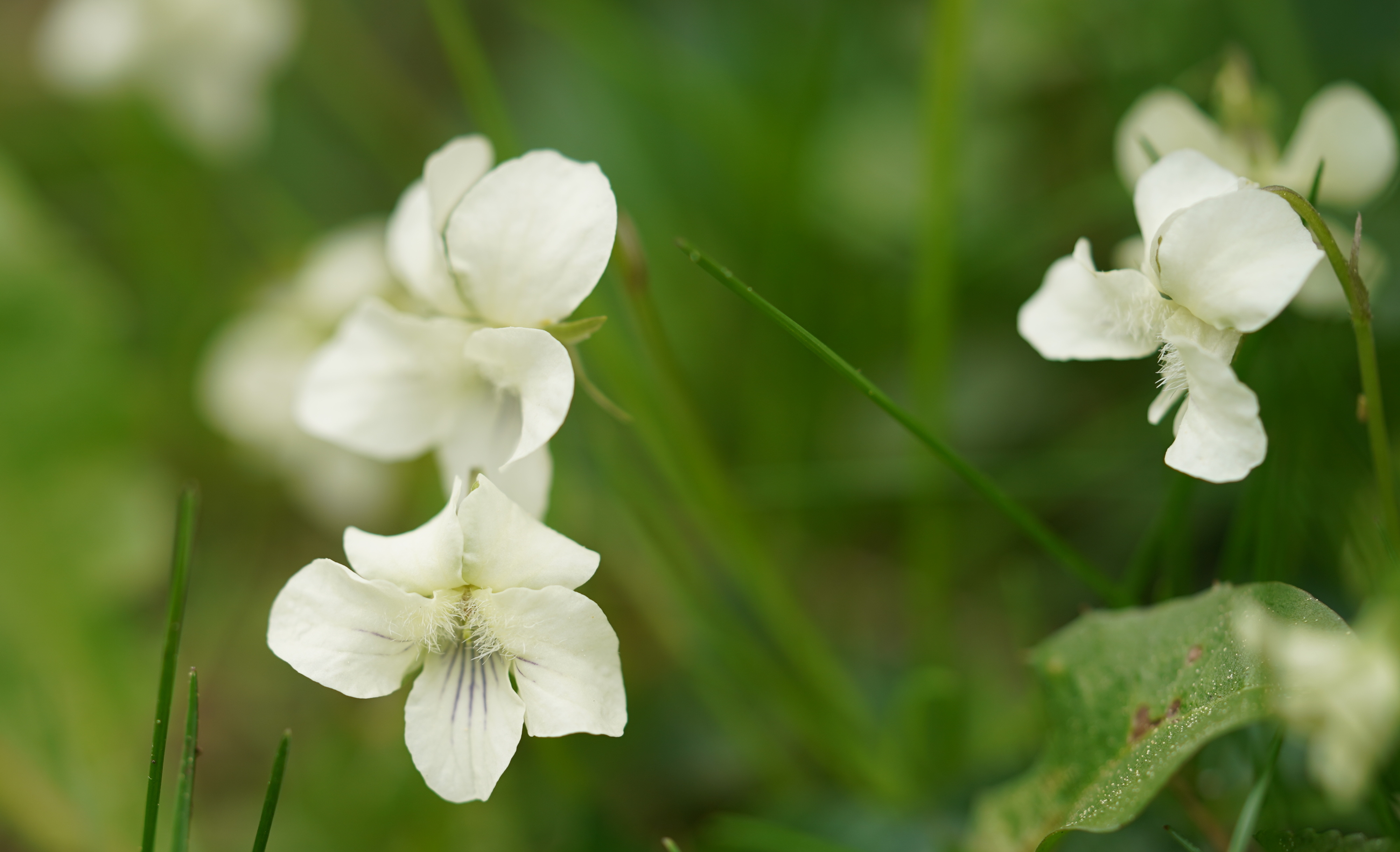 Of the four species that bloom in my yard, the palest violets, which are smaller, come up first, then the common blue-violet[1] vulgaris Viola sororia and white-with-purple[2] which are the biggest ones, & the kind most people think of as ‘violets’; then the small ivory or warm-whites shown here.