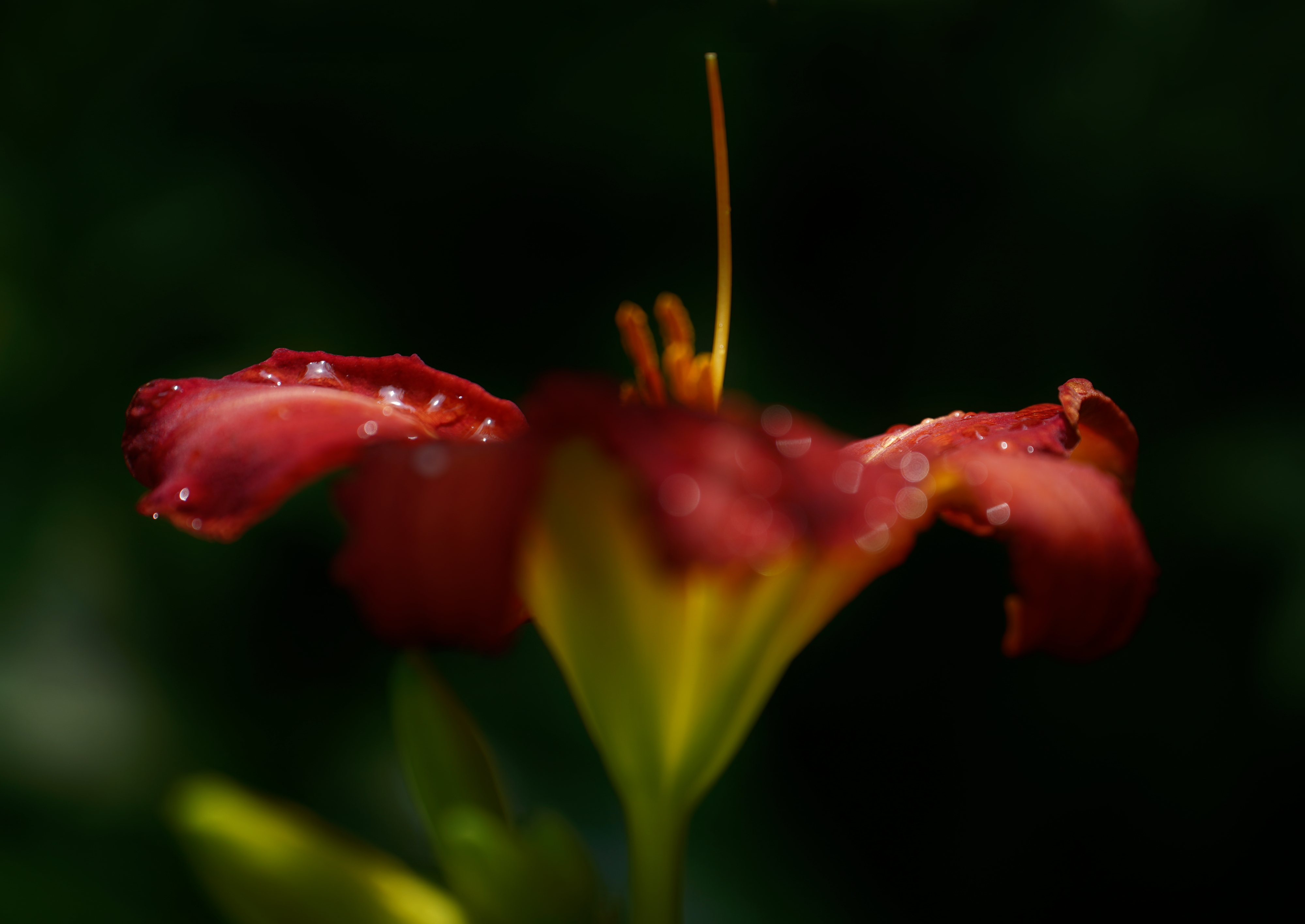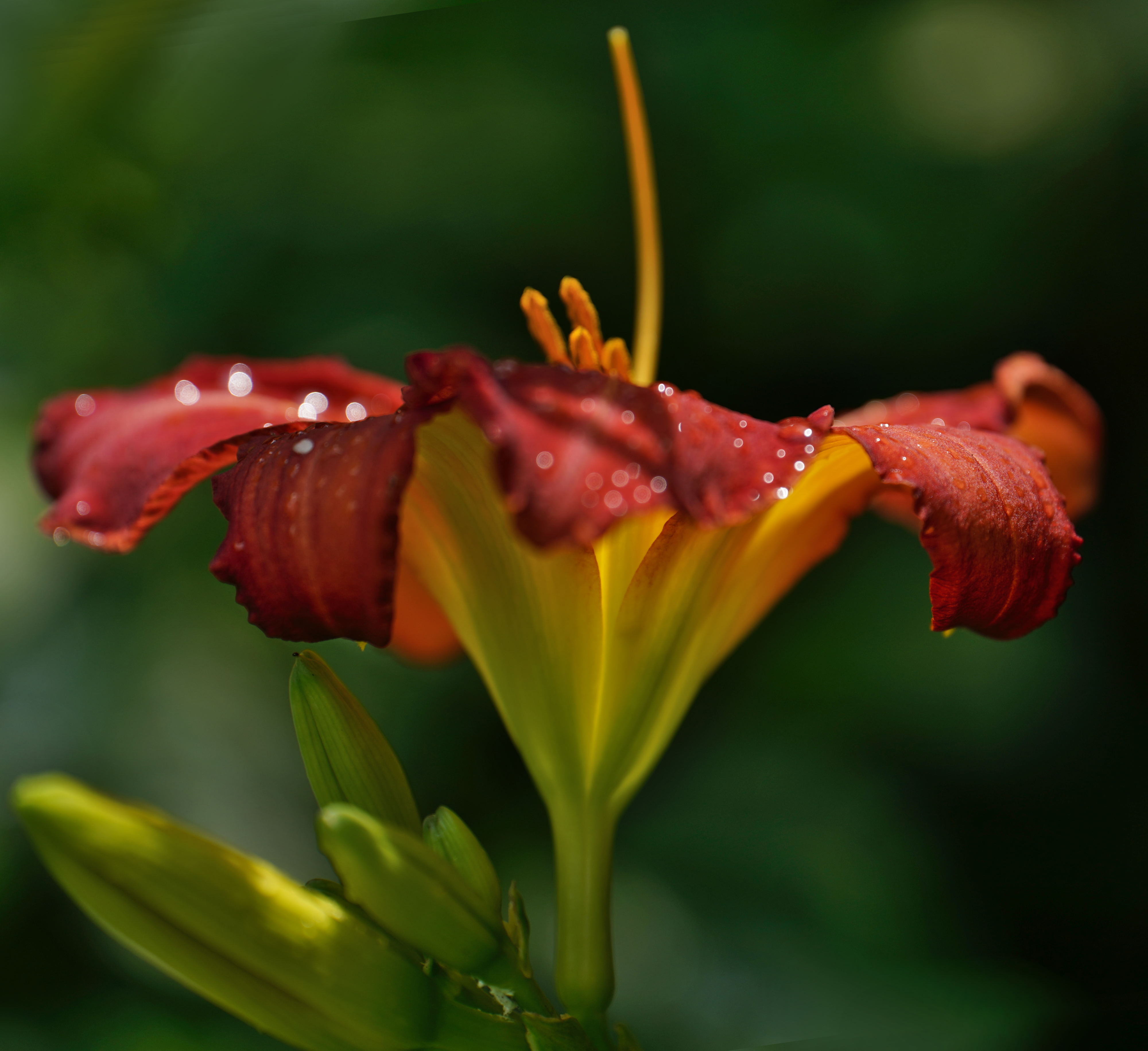 Daylily. sony IlCE-7C, tamron 70–180mm lens, 1/1250s, f/2.8, ev -0.7, iso100 focal length 180mm, daylight balance; cropped, rotated, some other futzing about with gimp...think I actually did shadow lifting this time around...?