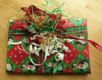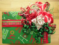 Here are some gifts wrapped in the traditional Christmas colors.