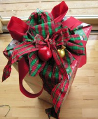 This gift was fun because it was so big, which meant I could use bows too big and ribbons too wide for more ordinary-sized gifts.