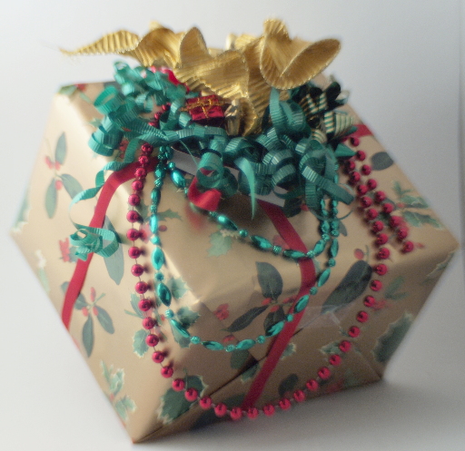 Since I did sort-of xmas-y beads, today I'm doing sort an xmas-y wrapped gift (since it was photographed in early January, it was a tad on the late side for xmas!)