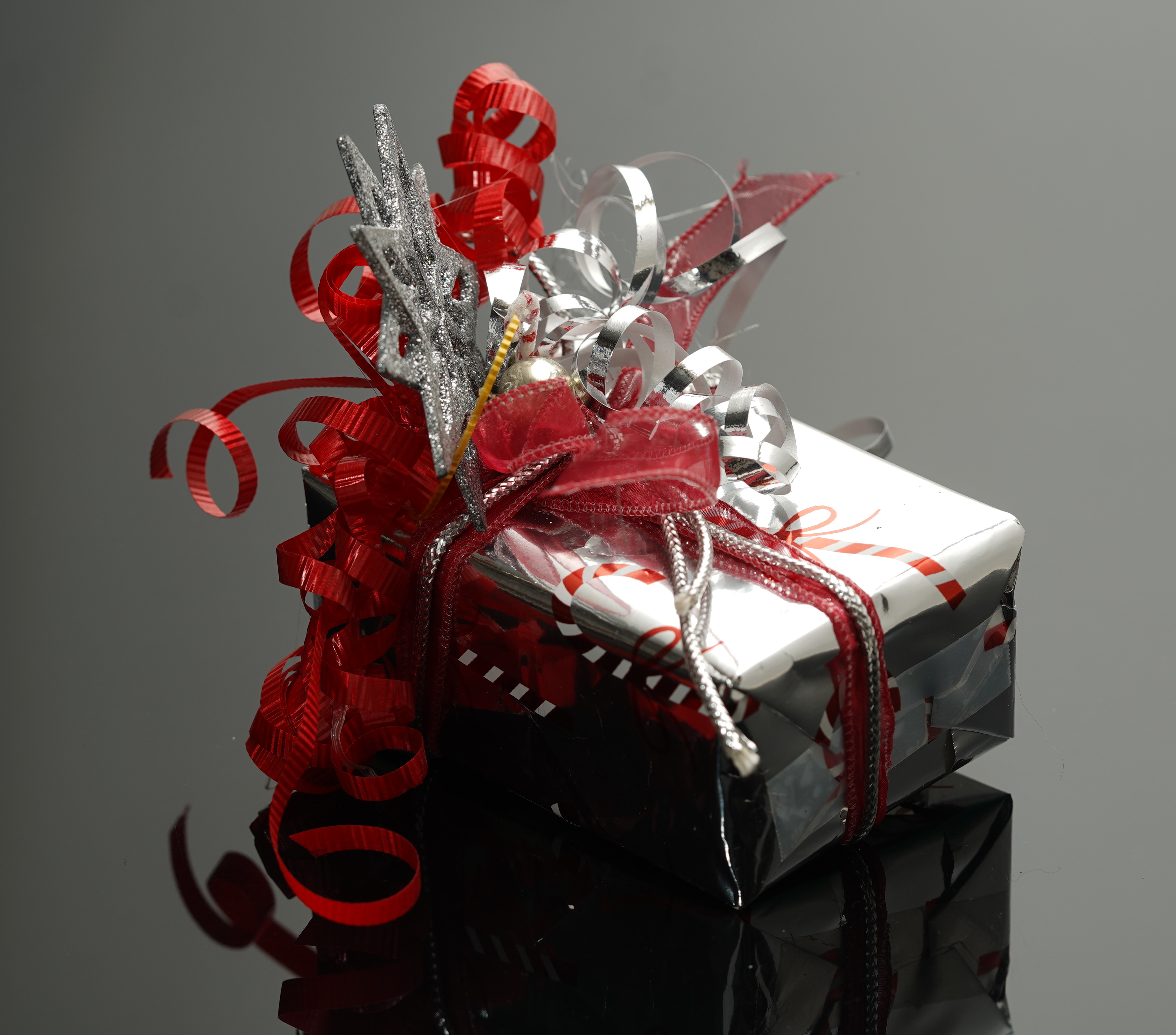 metallic paper, flocked silver snowflake, wire edged and curling ribbons, silver cord, candy cane, mini-glass ornament tape & hot glue; 23dec22:14:30, sony ILCE-7C, sony 90mm macro lens, f/5.0, ev 0, 1/160s, ISO 50, manual flash; cropped