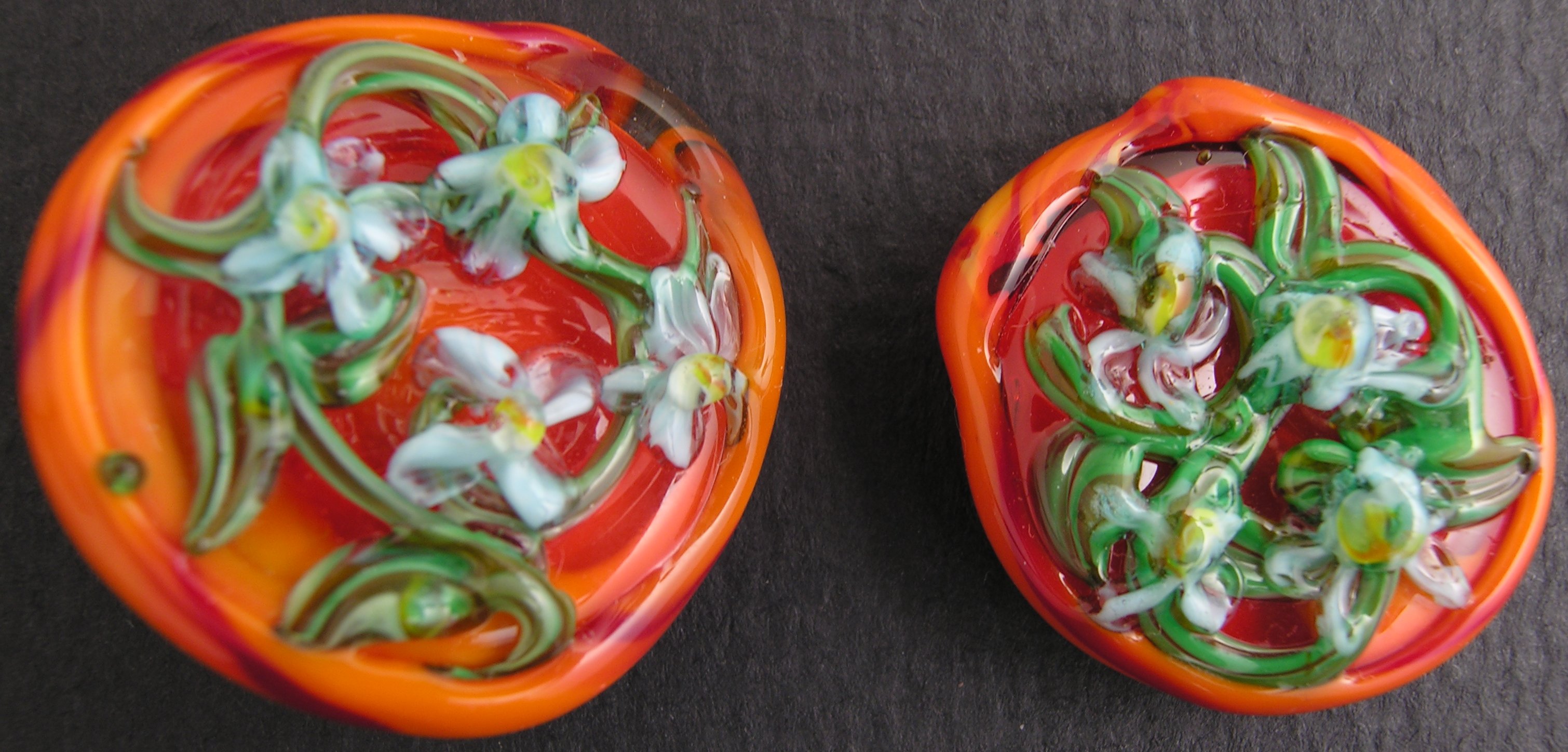 This pair is actually the first in the series of floral buttons I made, but as I had attached them together to make a double ‘cuff-link’ style button for holding my frankenstein vest together, they were difficult to photograph.