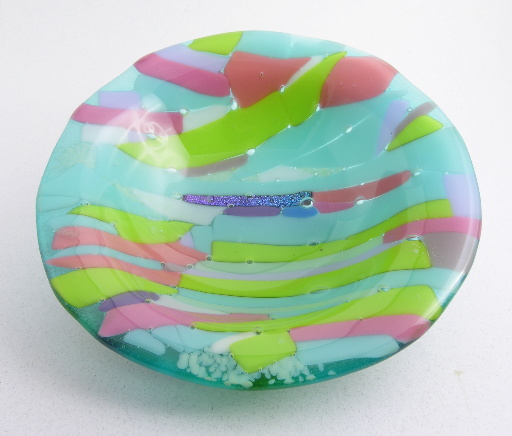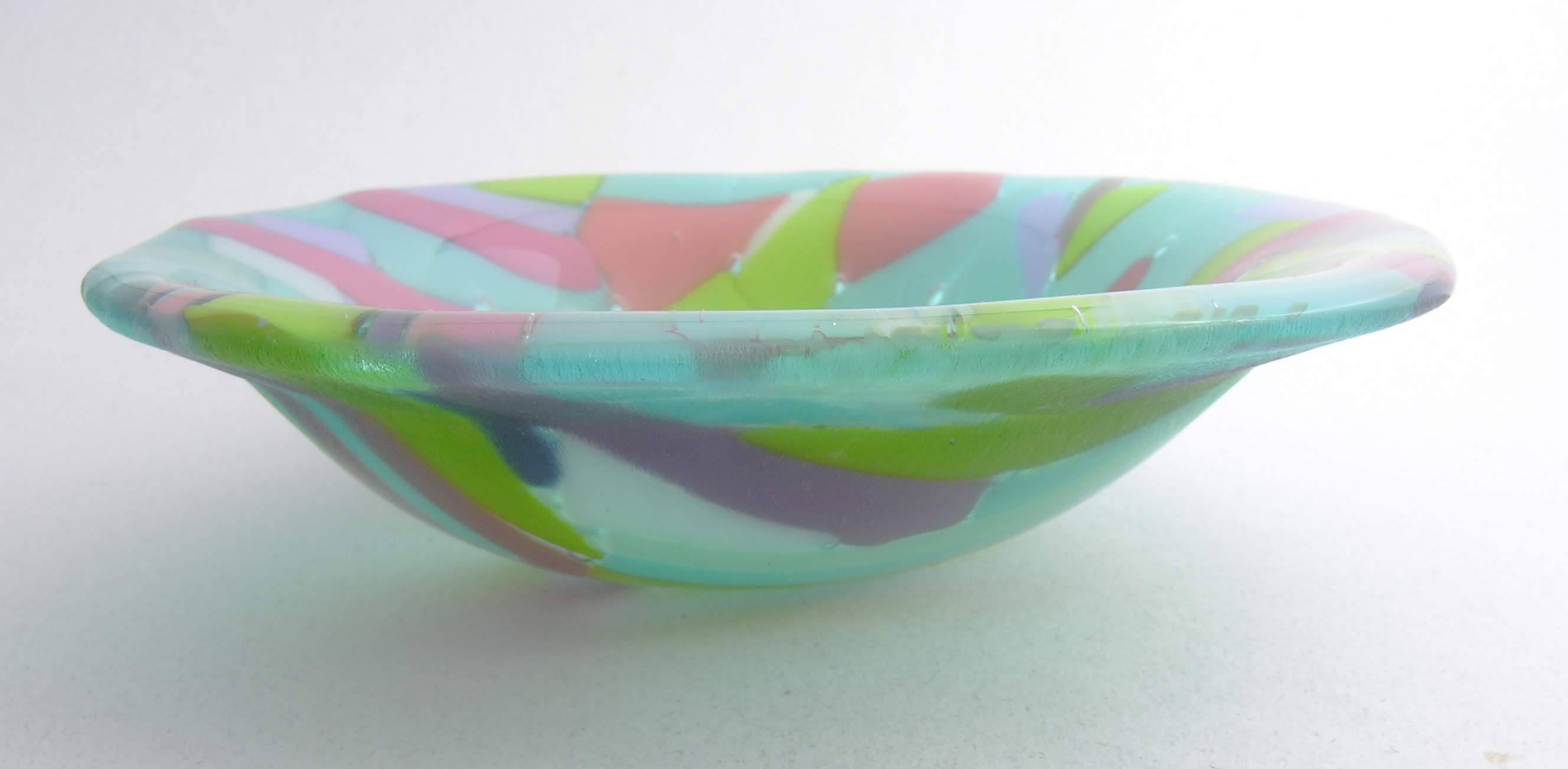 fused and slumped glass bowl, from bullseye scraps. Another, more recent index page for glass doodads. 04apr2014