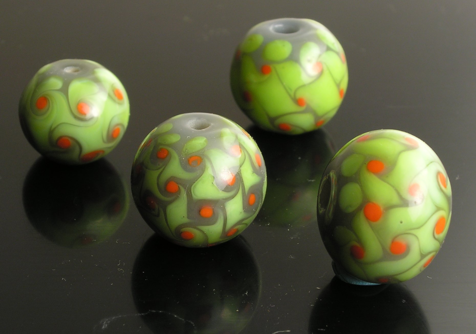 dot beads. My Lani Ching bead is made on opaque grey Bullseye glass,