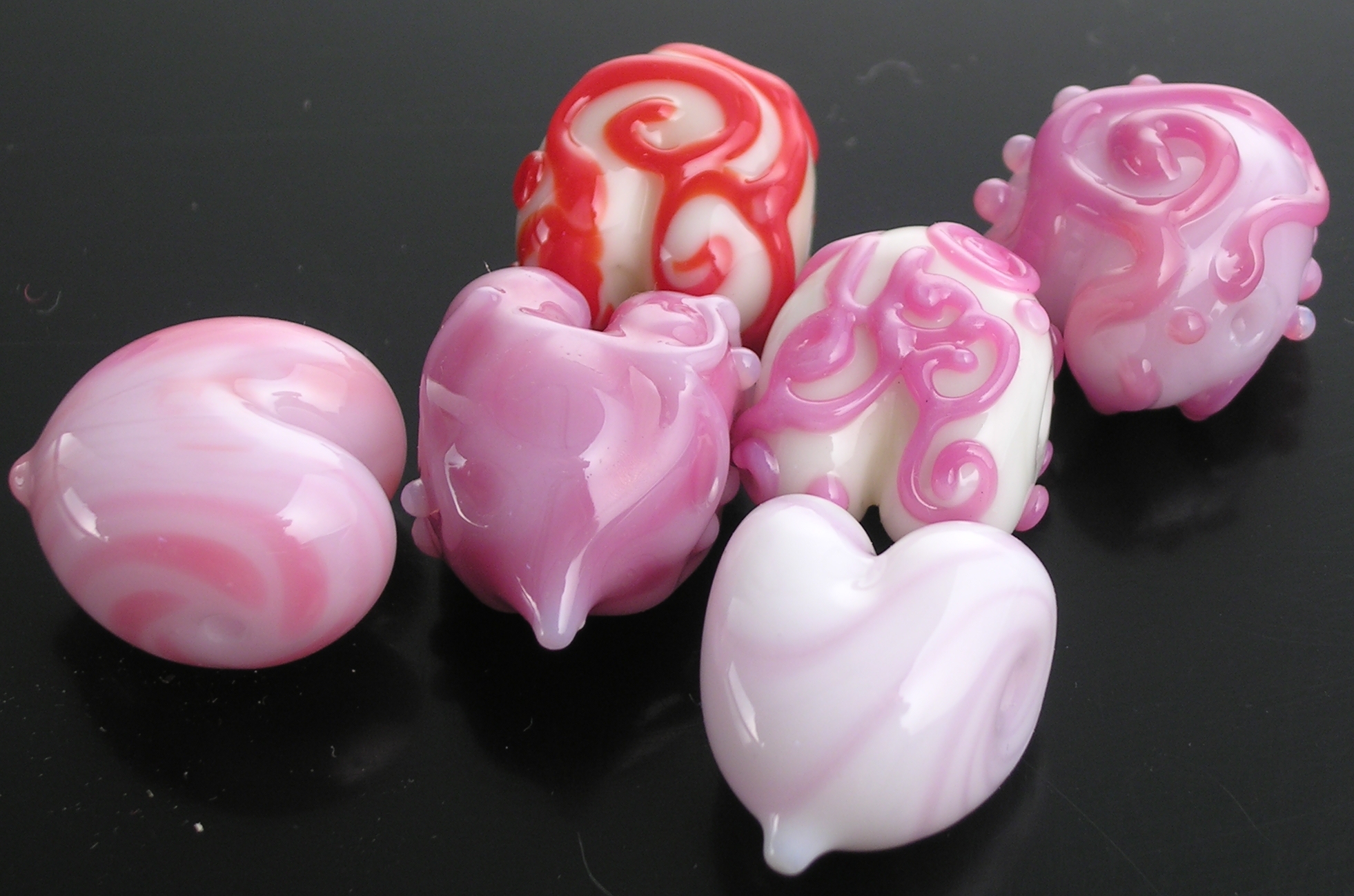 I made a series of hearts for Valentine's Day, mostly in the traditional pink, white and red colors. Here is a selection of opaque curliQs and gravity swirls: