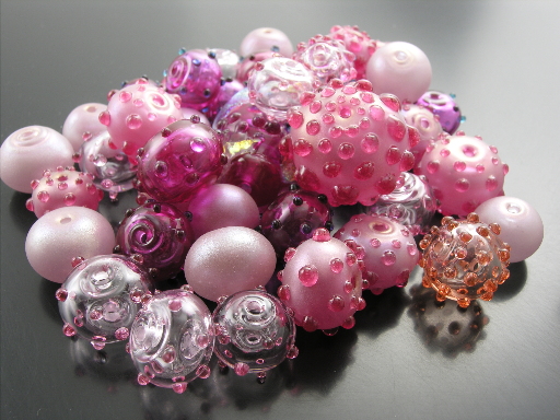 Assorted pink beads. Photographed 22jan08. This image actually combines two exposures for a higher dynamic range.