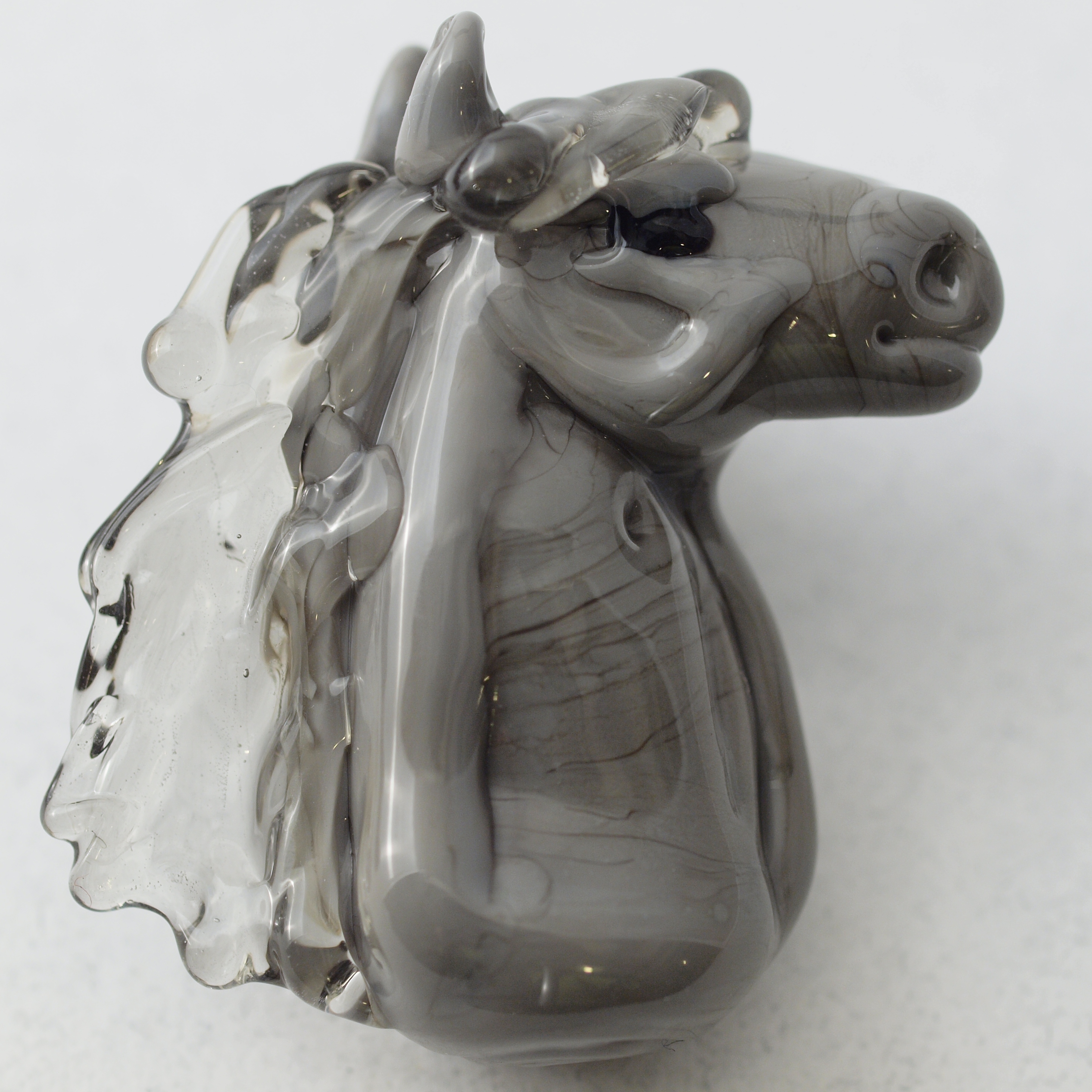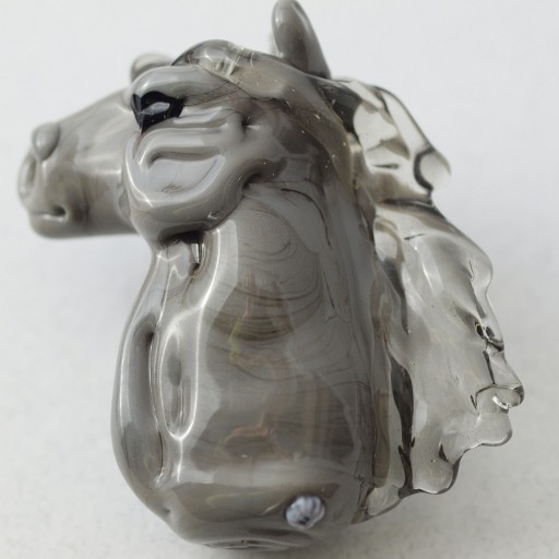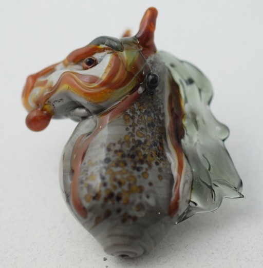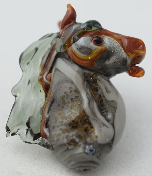 My very first pony. The neck is hollow but the head is solid. I'd guess it's between 1-3/4–2" high. Effetre soda-lime, 2jun10.