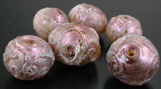 Gold pixie dust can shift all the way through the rainbow. These are among my favorites, but, being made on pig, are a pest, as the glass spits and pops like crazy. Unfortunately, there's no other sodalime glass to match this tertiary, brownish gold color.