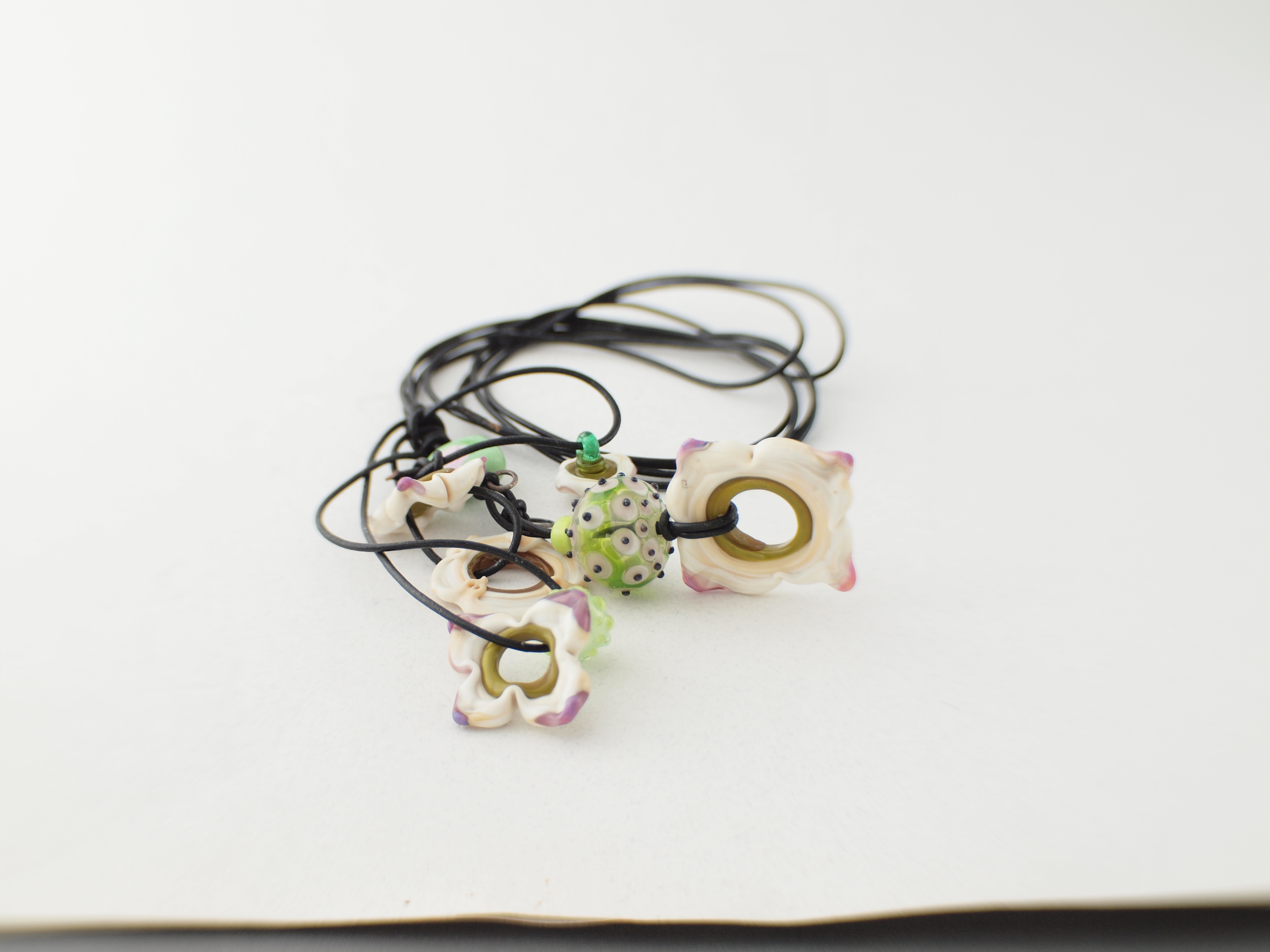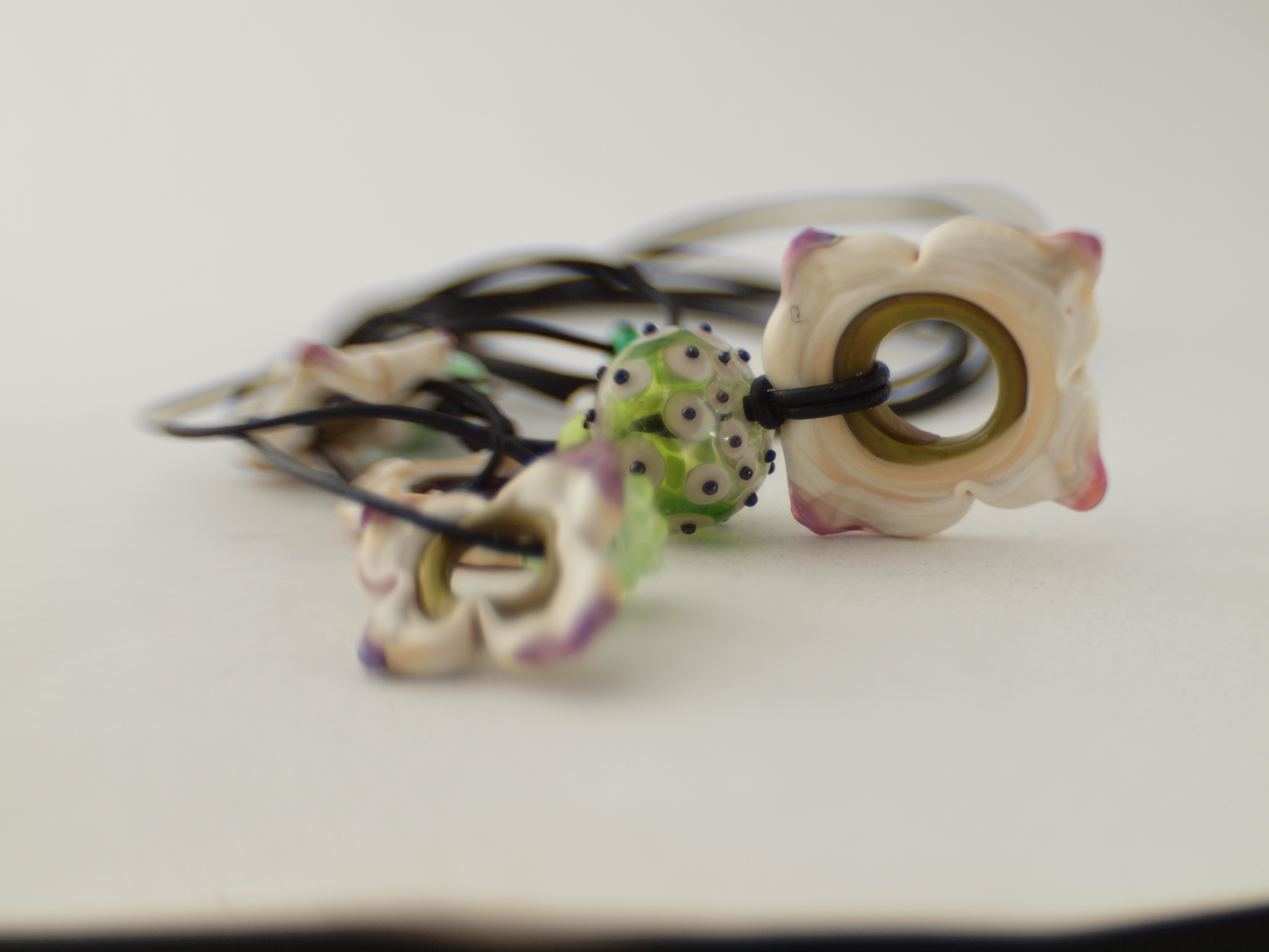 There's not a lot else to say, except that I obviously used big-hole mandrels to make these beads. Also, I'm not very good at making big-hole mandrel beads:) Or making dogwood bracts[2] , since I forgot to put the notch in them.[3]