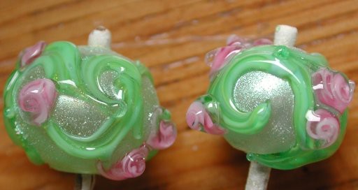 Two favorites, with the ‘sheet’ shaped trailing. Though they seemed hugely different when I made them, really all of these beads look remarkably similar as a group.