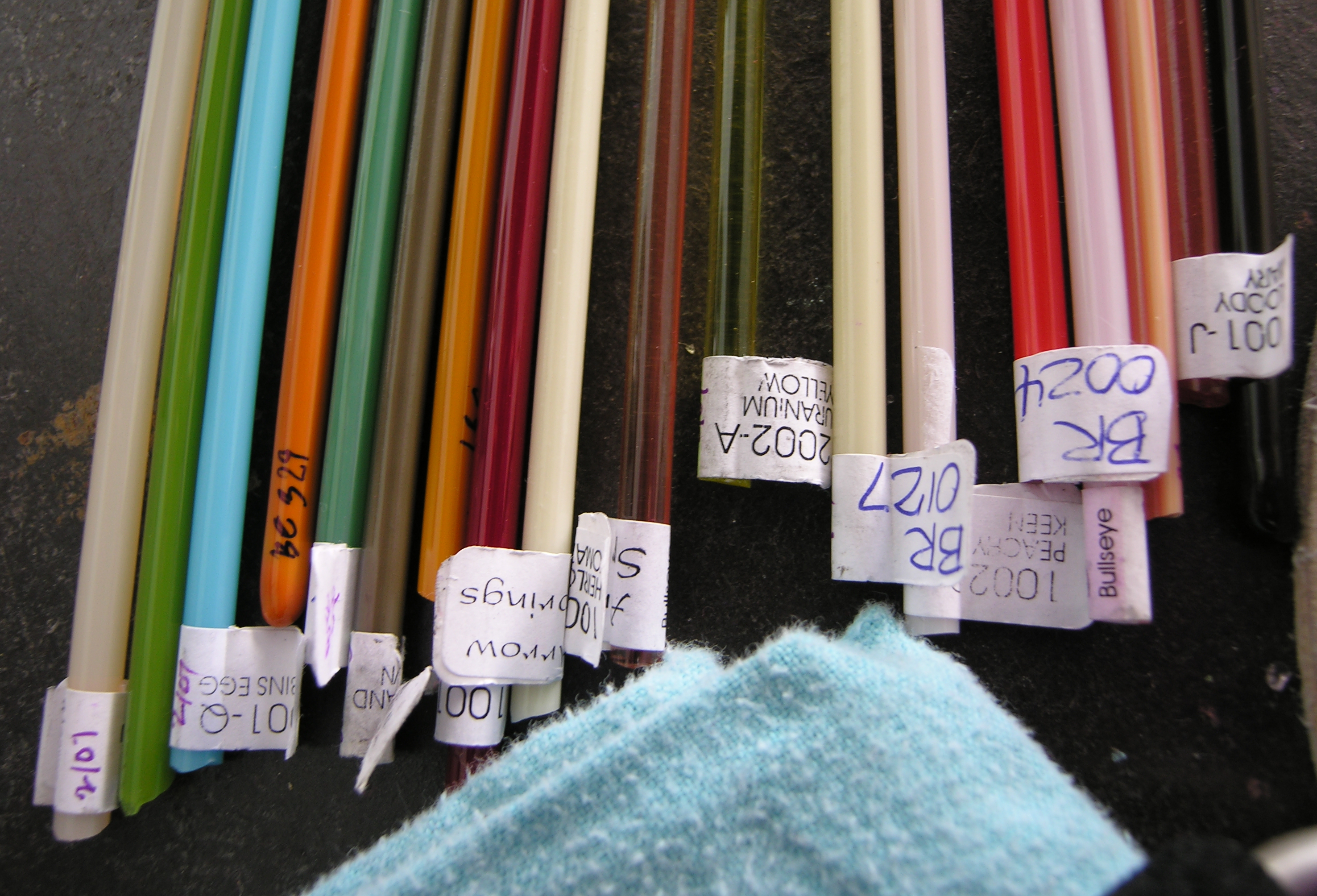 Some of the rods used to make this glass. That weird streaky one is third from the right. There's also some from the new (named) palette, as well.