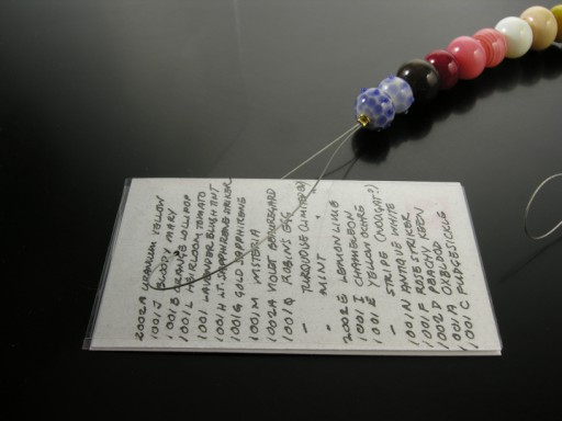 Here a picture of the card that allows me to match the names, above, to the beads: