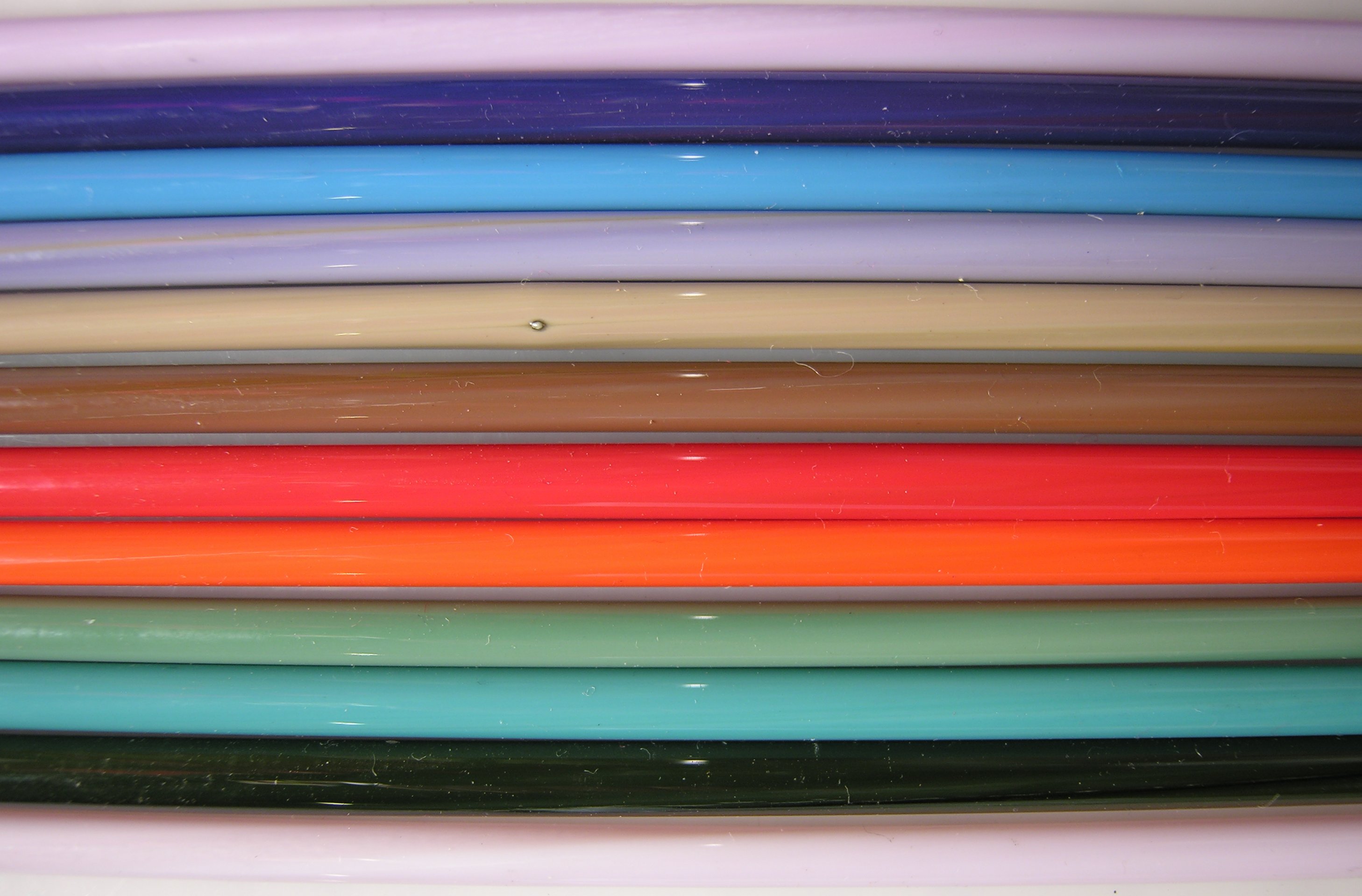 At least one lampworker I've spoken to—Peggy Prielozny, mebbe?—said she had problems with this glass cracking when cased with effetre clears, and sent hers back, but, you know, opaque red effetre cracks when it's cased in clear, so I'd like to do some thread tests comparing effetre opaques to this stuff. My guess is that it will be somewhat less compatible than the effetre line, but useable for certain techniques. Yes of course I would like all my glass to be perfectly compatible. Back when I painted, I wanted all my pigments to be perfectly lightfast and nontoxic, too. However, this is real life, with tradeoffs.