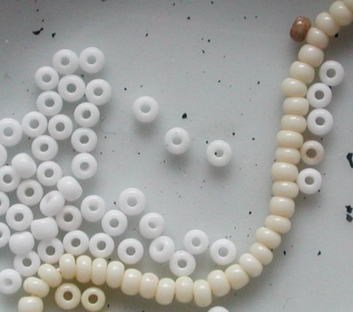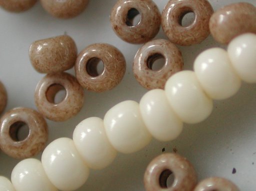 Okay, I'm a bead snob. I admit it. I don't like to use wood or plastic beads (for the most part) and I tend to avoid dyed beads. I don't like them, because as a rule the durability of the color of the stone or glass underneath can be measured in centuries or millennia, but dye can fade in years or decades. Because I can in fact buy glass in ivories and celadon greens, I want to purchase hanks of seed beads in those colors too. Unfortunately for me, many manufacturers find it easier to dye their glass seed beads than to make them out of colored glass.