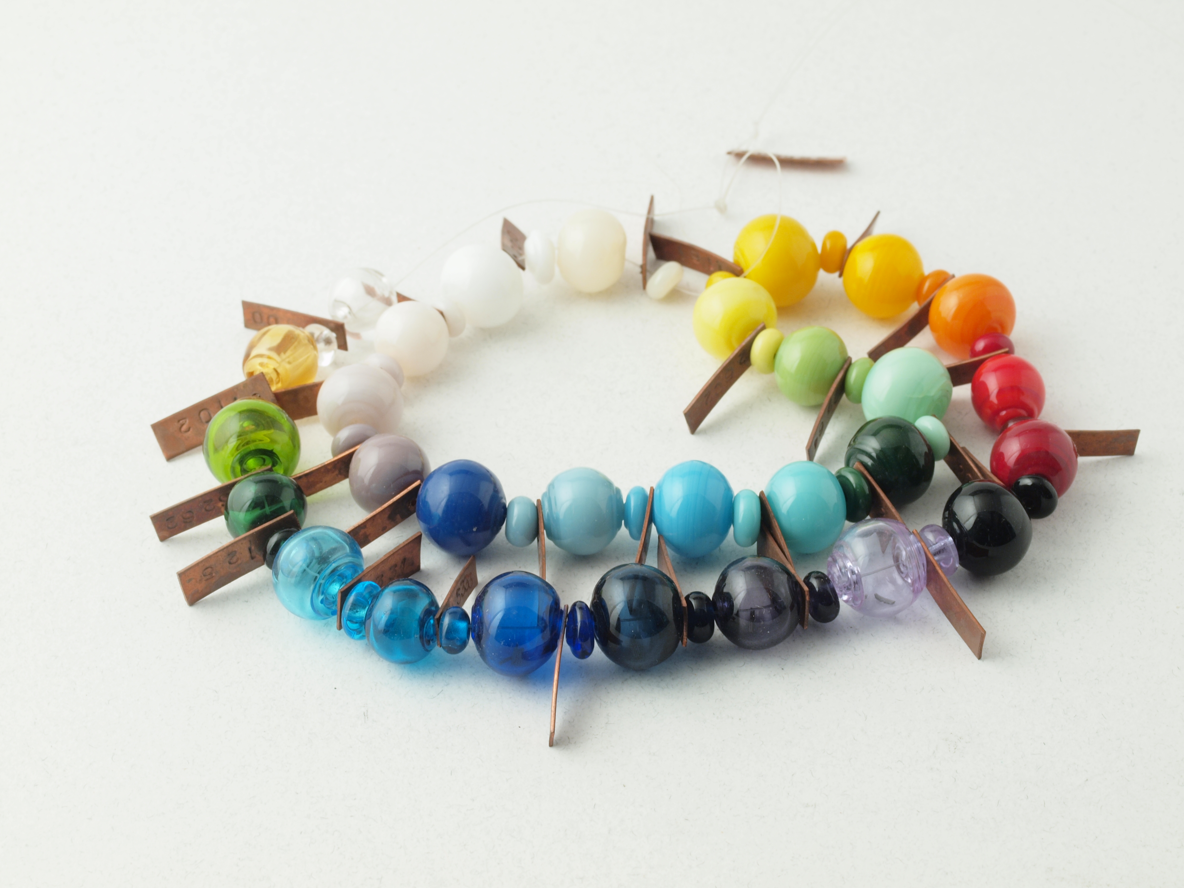 But I enjoy making sample strands, and I think they're kinda fun, hanging on the wall. It's that old inclination to put beads into chromatic sequence, I guess.