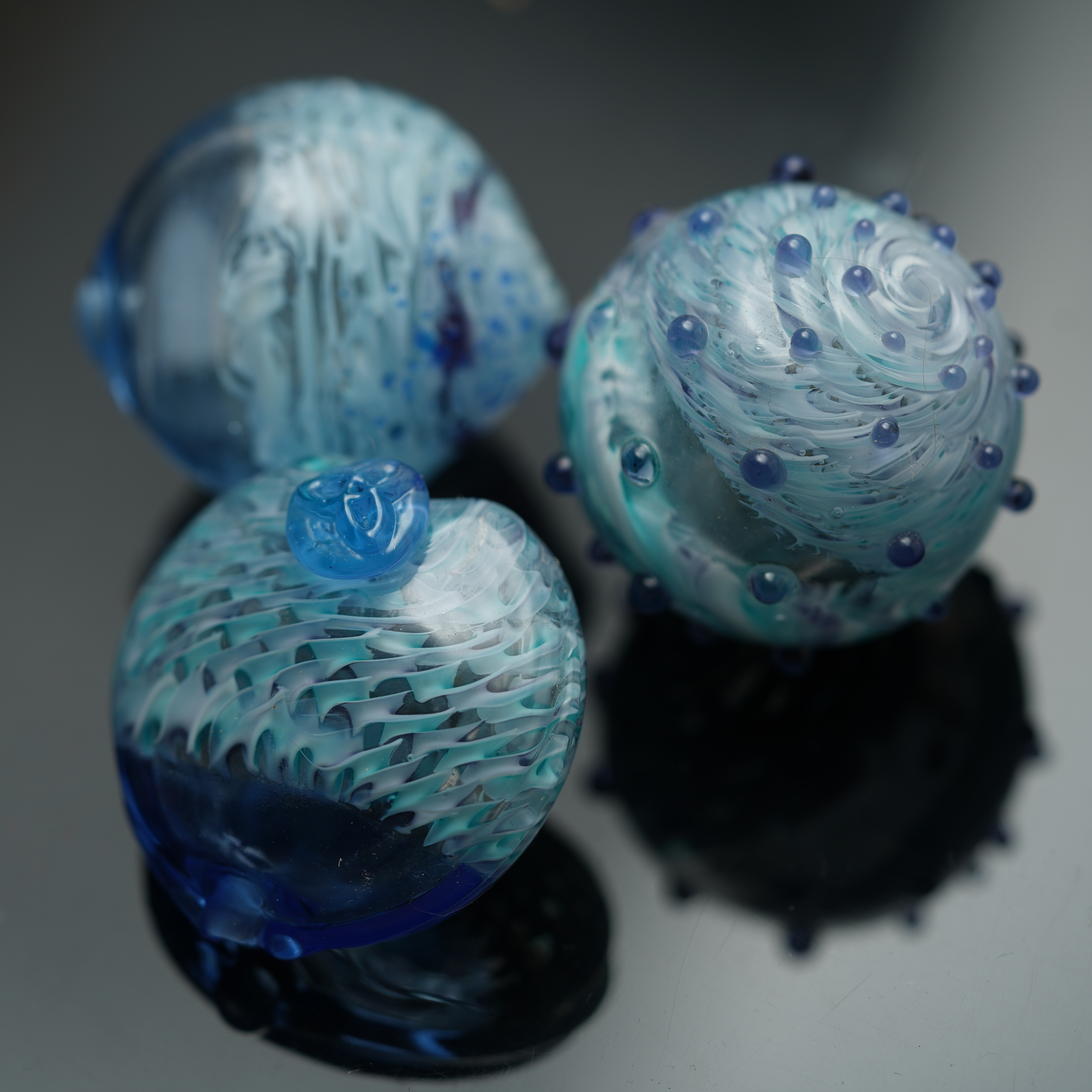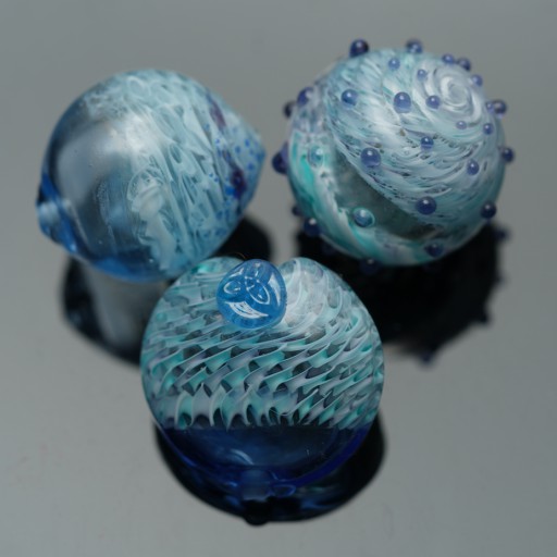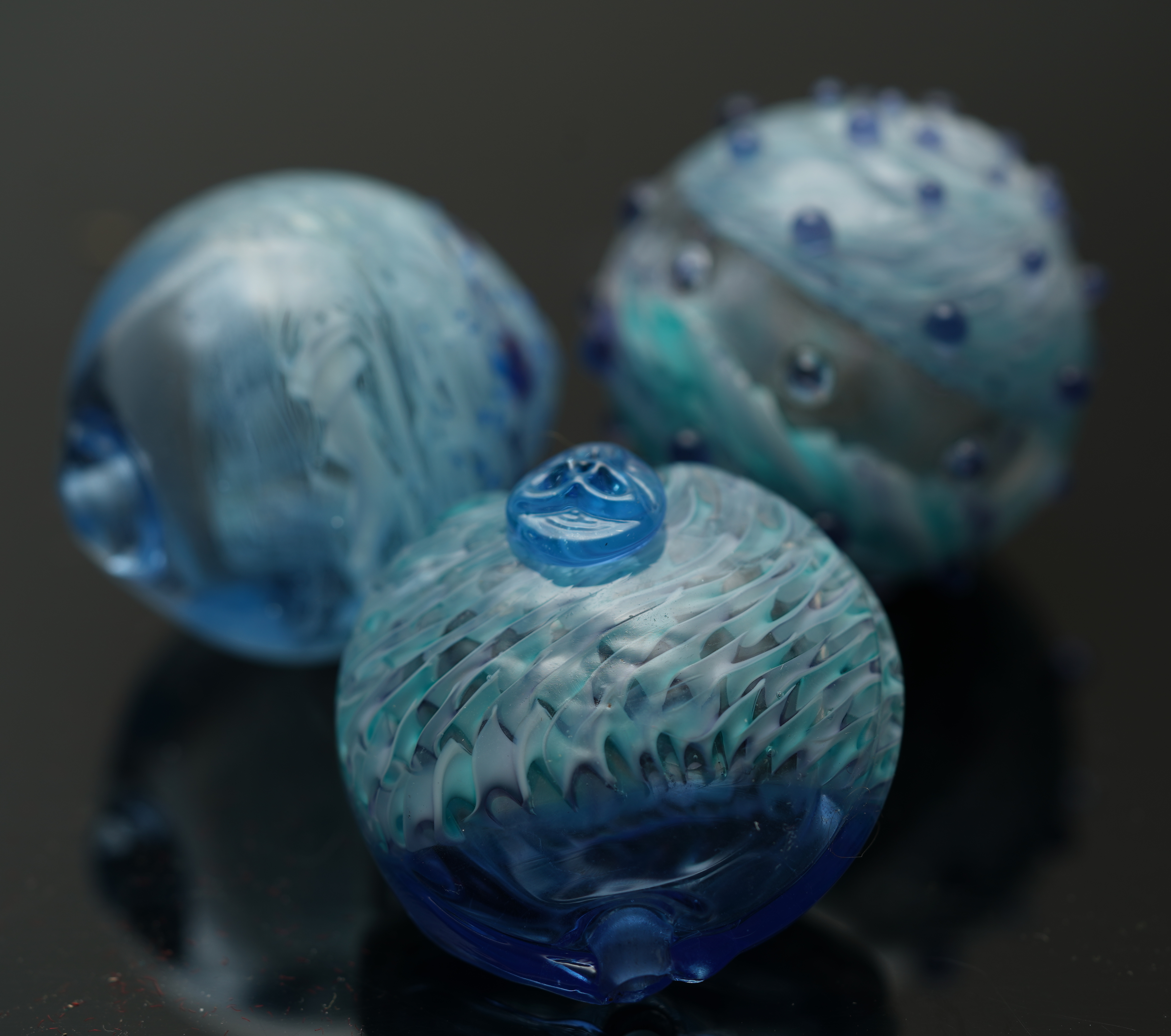 These beads came from no-longer needed and/or failed unicorn horn ornament samples, which, being nice and thick, made them ideal for reworking into large beads.