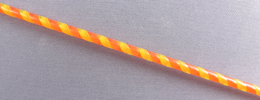 Ribbon cane. "pi" brand 96 coe soda-lime glass (now defunct). Roughly 3mm in diameter; perhaps 18–20” long. 20oct08. There's no bigger version of this image because the camera simply would not focus, and anyway, it's already roughly life size at this resolution.