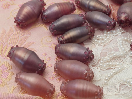 Barrel beads with pixie. Bullseye cranberry, samples made 05APR2013 (according to my studio notebook)