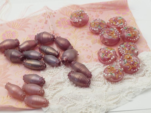 The original BE was clearly too dark for the fabric, so I made these lighter beads, laying them atop the first batch to make the difference obvious.