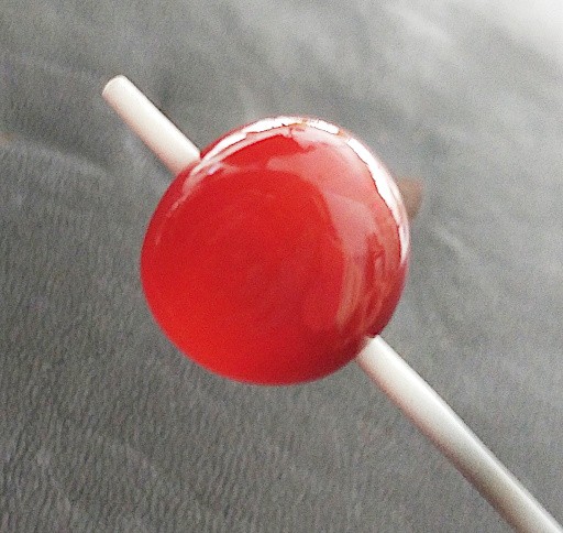 As you can see, I also had no trouble getting the 076 transparent red to strike, but the secret is to let it cool nearly to the strain point (820 deg F) and then warm it back up to a dull red. Making a bunch of these little hearts is a great way to familiarize yourself with transparent red's striking characteristics, & because you have to work sculptural glass relatively cold, it's usually easy to develop good colour.