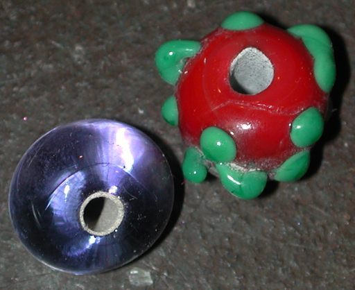 Perhaps the picture below, of two beads only 8 or 10mm in diameter, will illustrate my point about photography magically magnifying stuff:) Quite apart from the complaints of whiny photographers, nothing marks a bead as a beginner effort (or cheap import) as quickly, to my mind, as bad holes, filled with release.