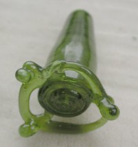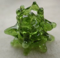 I suppose I ought to acid etch this—between the internal bubbles from boiling the glass and shiny surfaces, it'd difficult to see what's going on. But it's difficult to justify all that mess just for a bead curtain bead. approximately 20x19mm