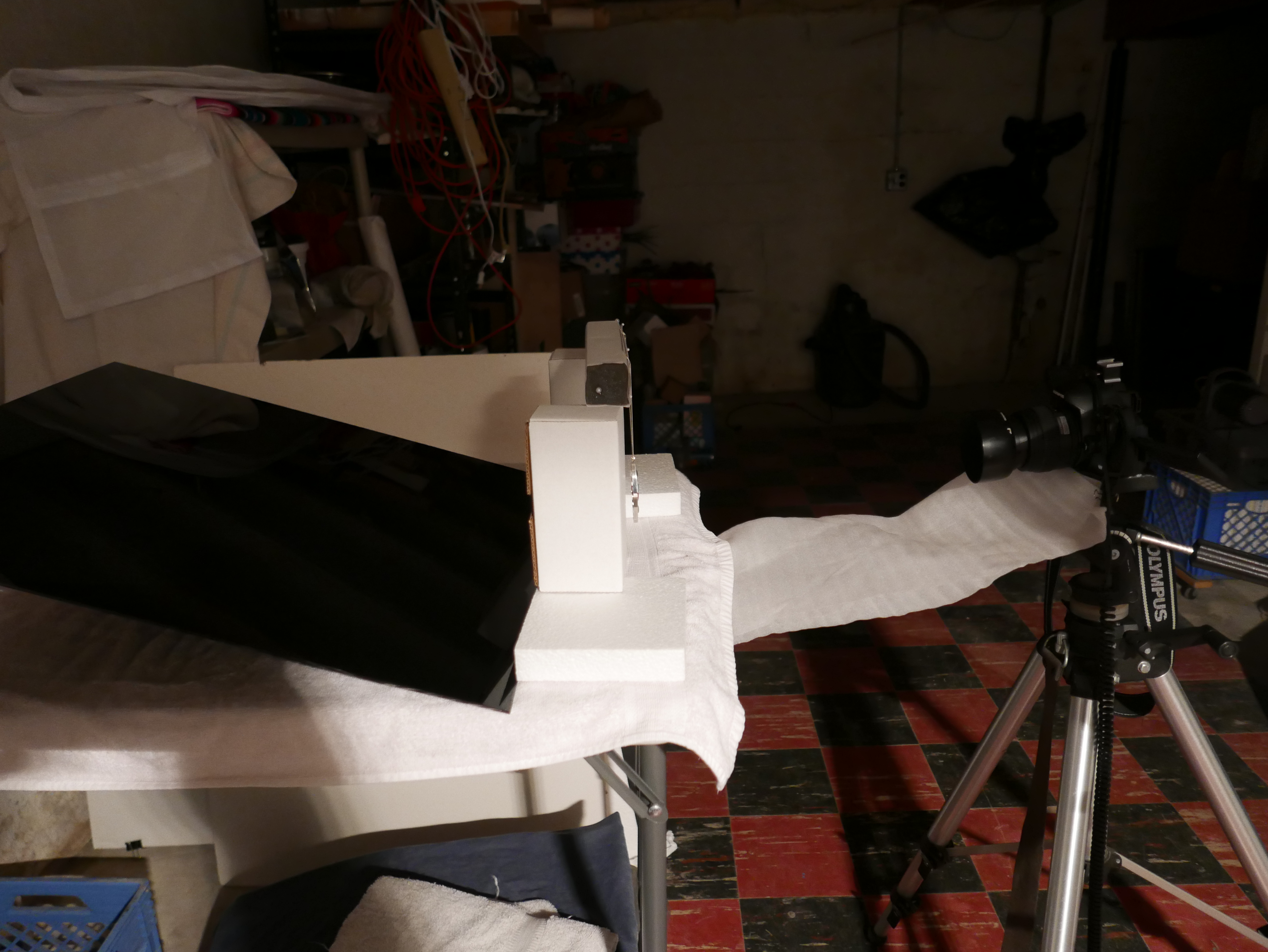 - NOT SHOWN: 9x24 (approx) white diffusing panel to block specular highlights from halogen light, stray light from leading edge of flash