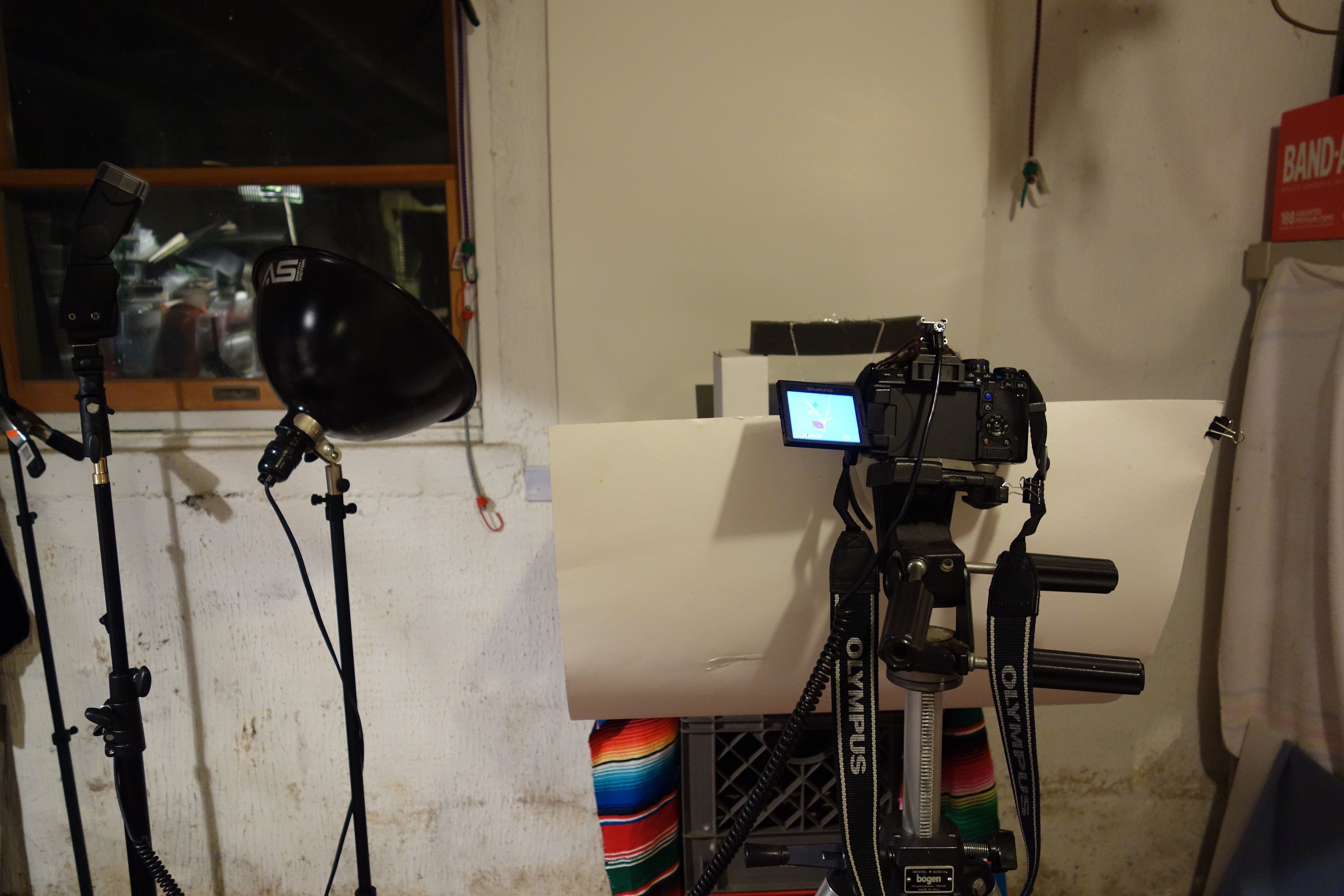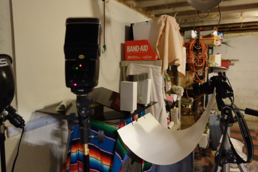 Amusingly enough, my camera's metadata claims the flash “did not fire” which is what happens, I guess, when you hook a manual flash[2] up via two cords and a hotshoe... But at least I've gotten a proper lightstand & mount for the flash, so no more bungee cord!