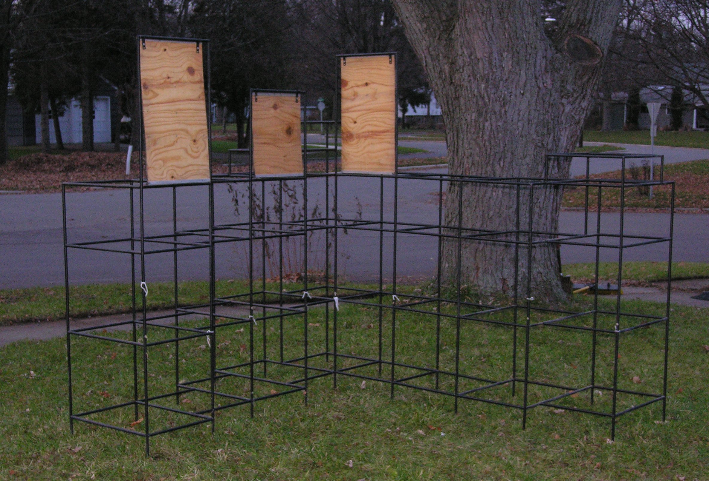 This is an informational page for abstracta showcase. This conformation is based upon a print image in an album of early work. N.b. the original design (dad's design) was too low and the units too deep. John modified the design to make it taller and less deep. Some of the modularity was unfortunately sacrificed as a result.